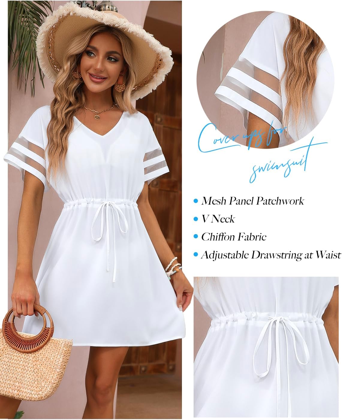 BMJL Womens Swimsuit Coverup Beach Dress V Neck Chiffon Bathing Suit Cover Ups Swimwear