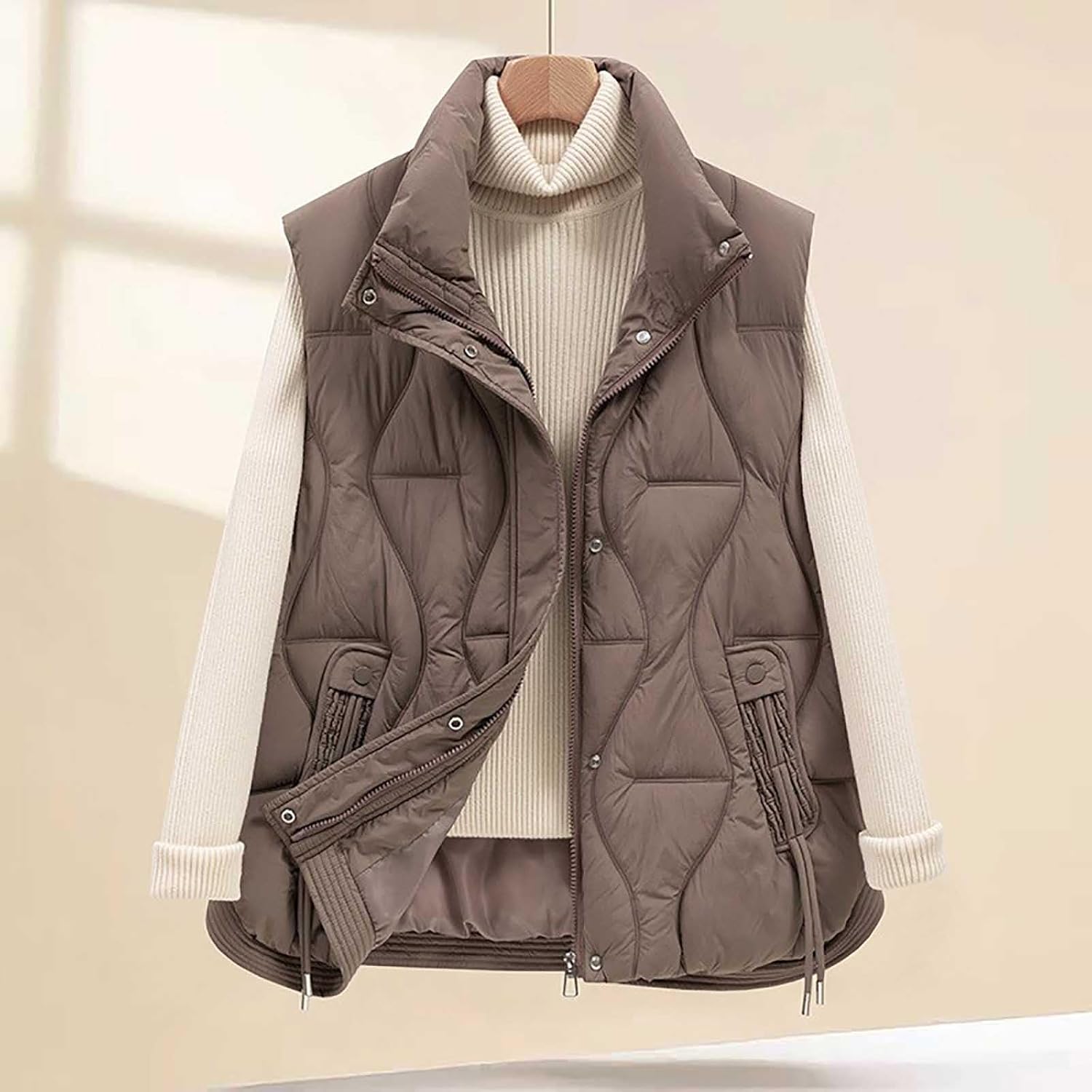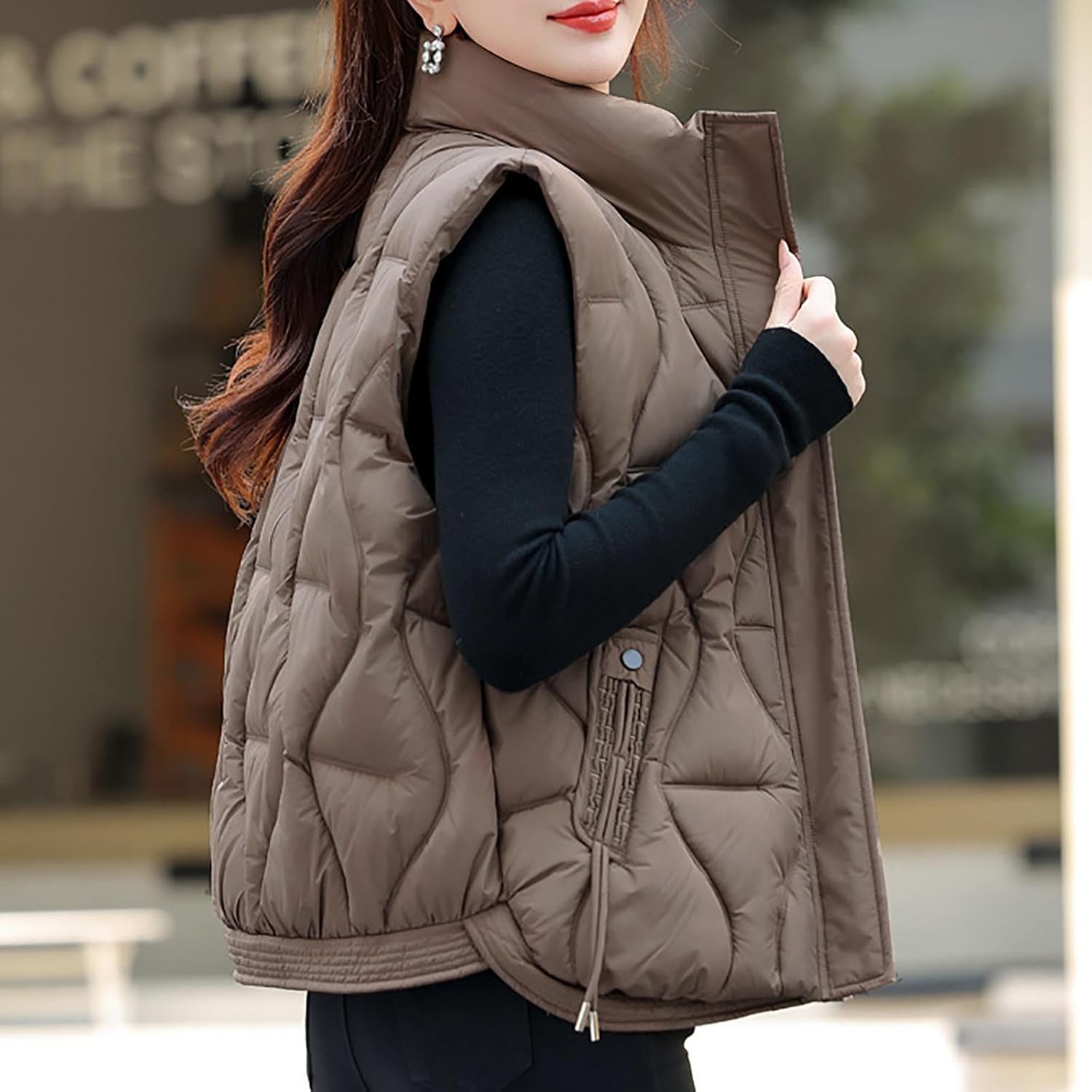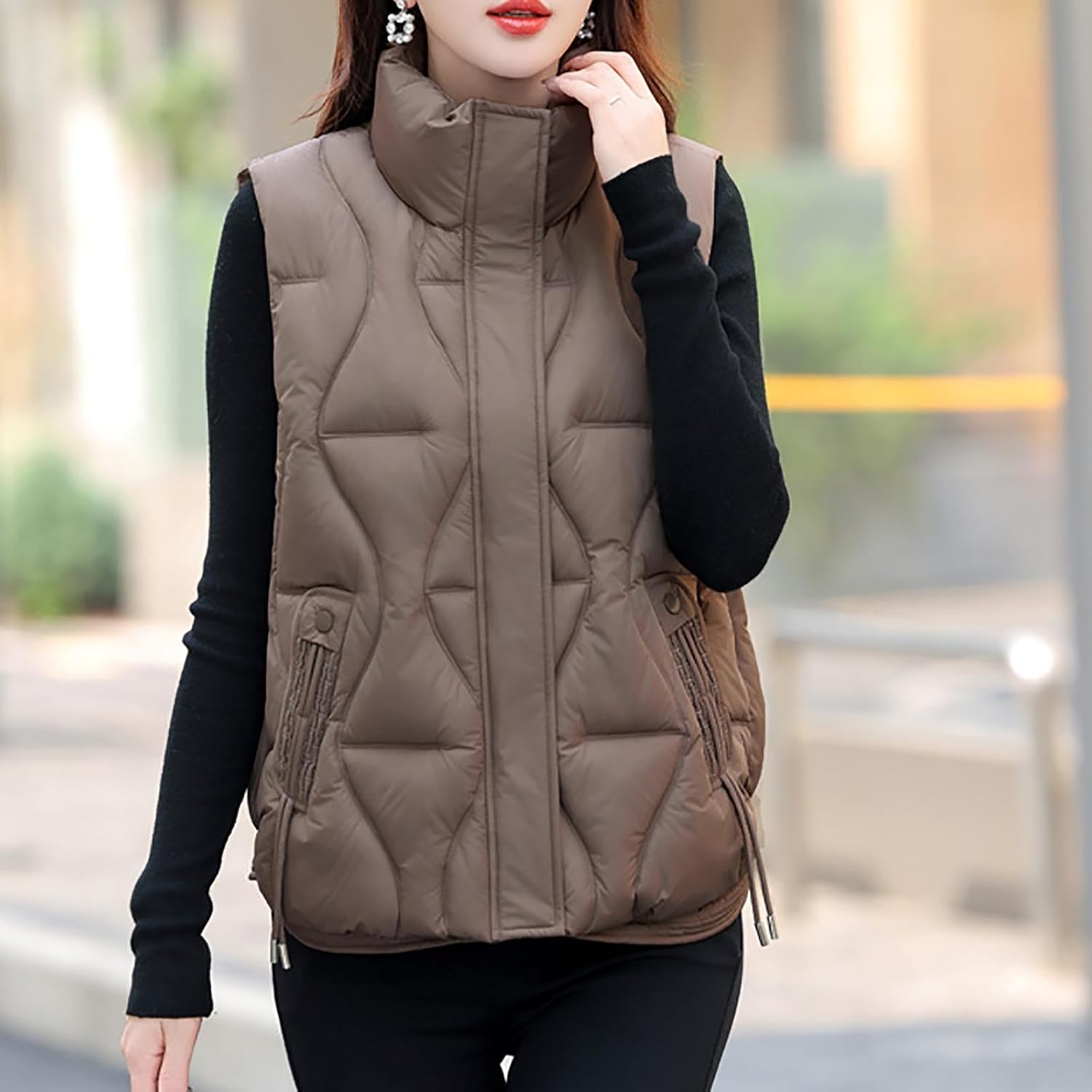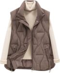 Borniu Women Casual Outdoor Puffer Vest Jackets Casual Zip-up Sleeveless Winter Warm Down Coat Full Zipper Outwear