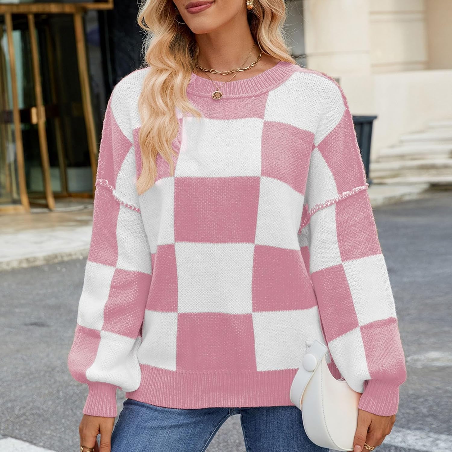 Borniu Women’s Sweater 2025 Fall Winter Long Sleeve Casual Color Block Patchwork Lightweight Knitwear Pullover Sweaters