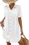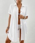 Bsubseach Swimsuit Coverup for Women V Neck Bathing Suit Cover Up Short Sleeve Causal Bikini Button Down Shirt