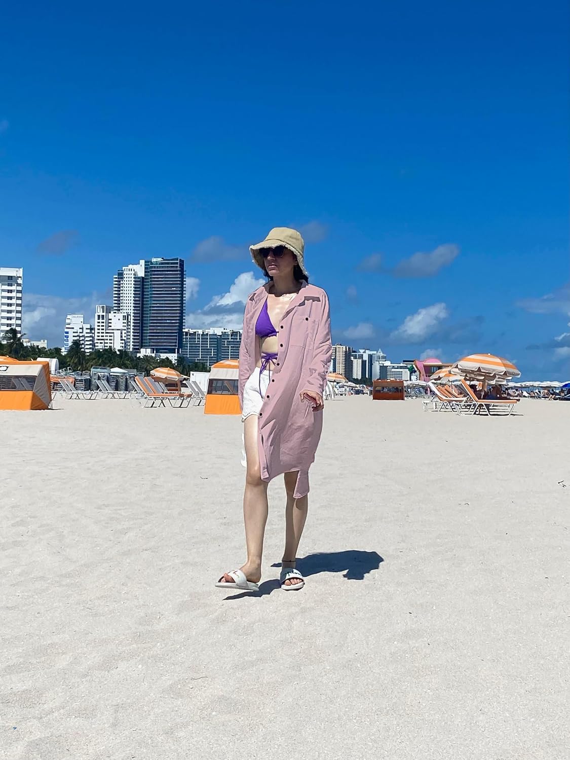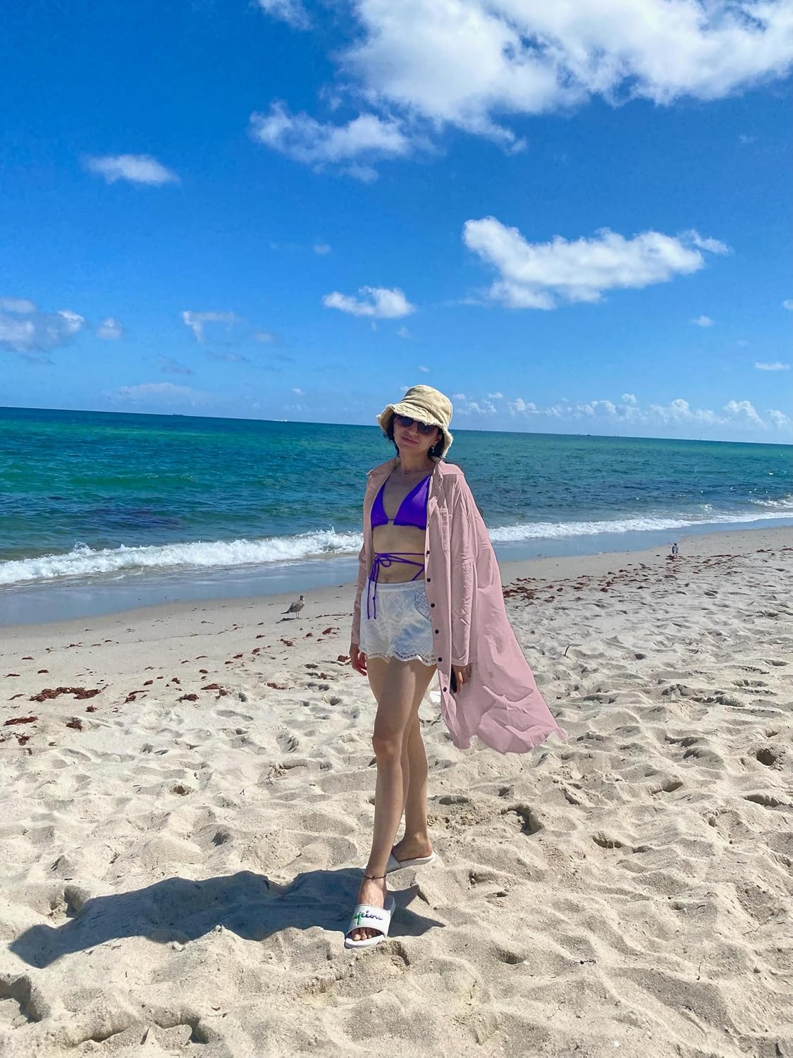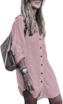 Bsubseach Womens Long Sleeve Linen Swimsuit Cover Up Button Down Beach Cover Ups Summer Swim Shirt Dresses