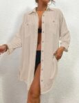 Customers find this swimsuit cover up to be a great style for beach and pool, made of superb fabric that feels luxurious and is lightweight. The cover up offers good coverage for both front and back, and customers appreciate its perfect fit, with one noting it can be worn open or completely buttoned. While many find the length suitable for beach use, some mention it’s shorter at the back. Customers value its versatility, with one mentioning it can transition from beach to casual dinner wear.