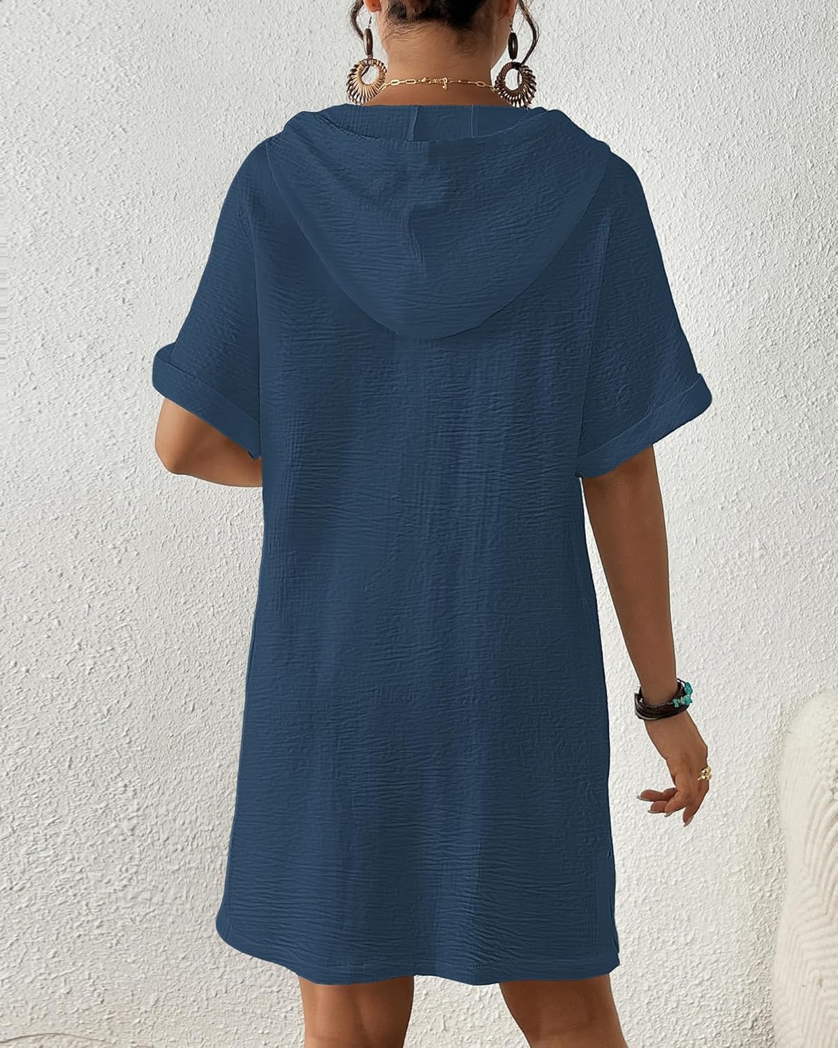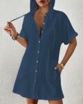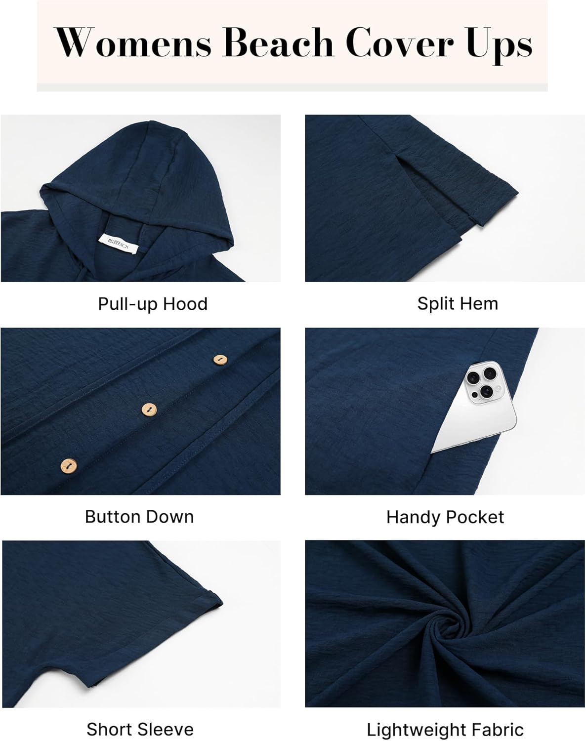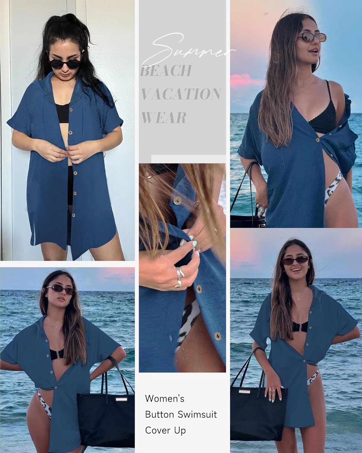 Bsubseach Womens Swimsuit Cover Up Shirt Button Down Short Sleeve Bathingsuit Coverups Hooded Beach Coverup With Pockets