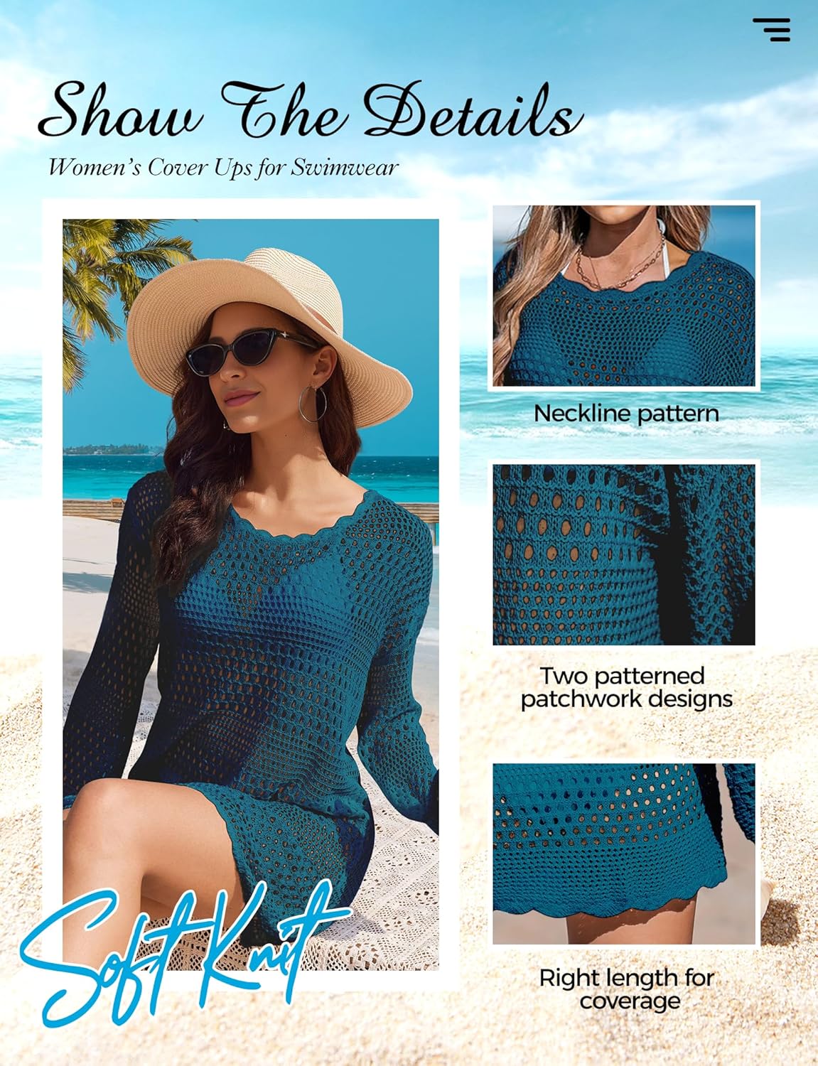 Buauty Womens Swimsuit Coverup Crochet Swim Cover Ups Bikini Bathing Suits Swimwear 2025 Summer Beach Dress Vacation Outfits