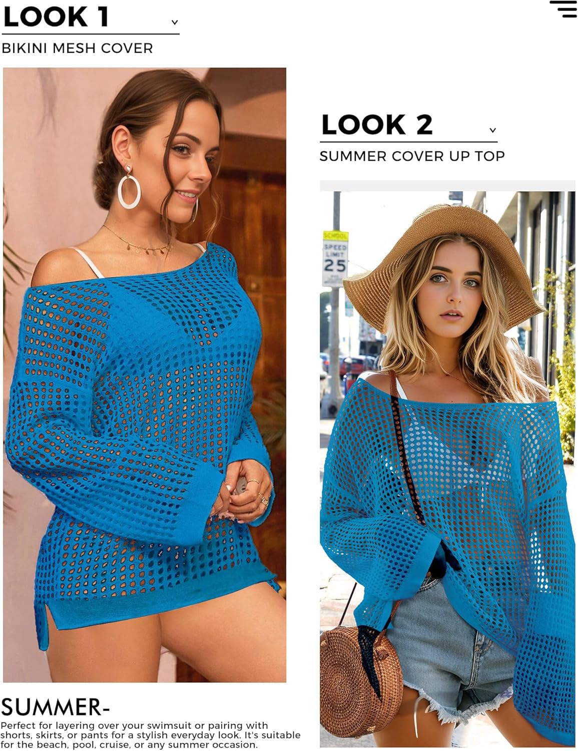 Buauty Women’s Swimsuit Crochet Cover Up | Bathing Suit Swimwear Short Sleeve Knit Beach Dress Summer Vacation Outfits
