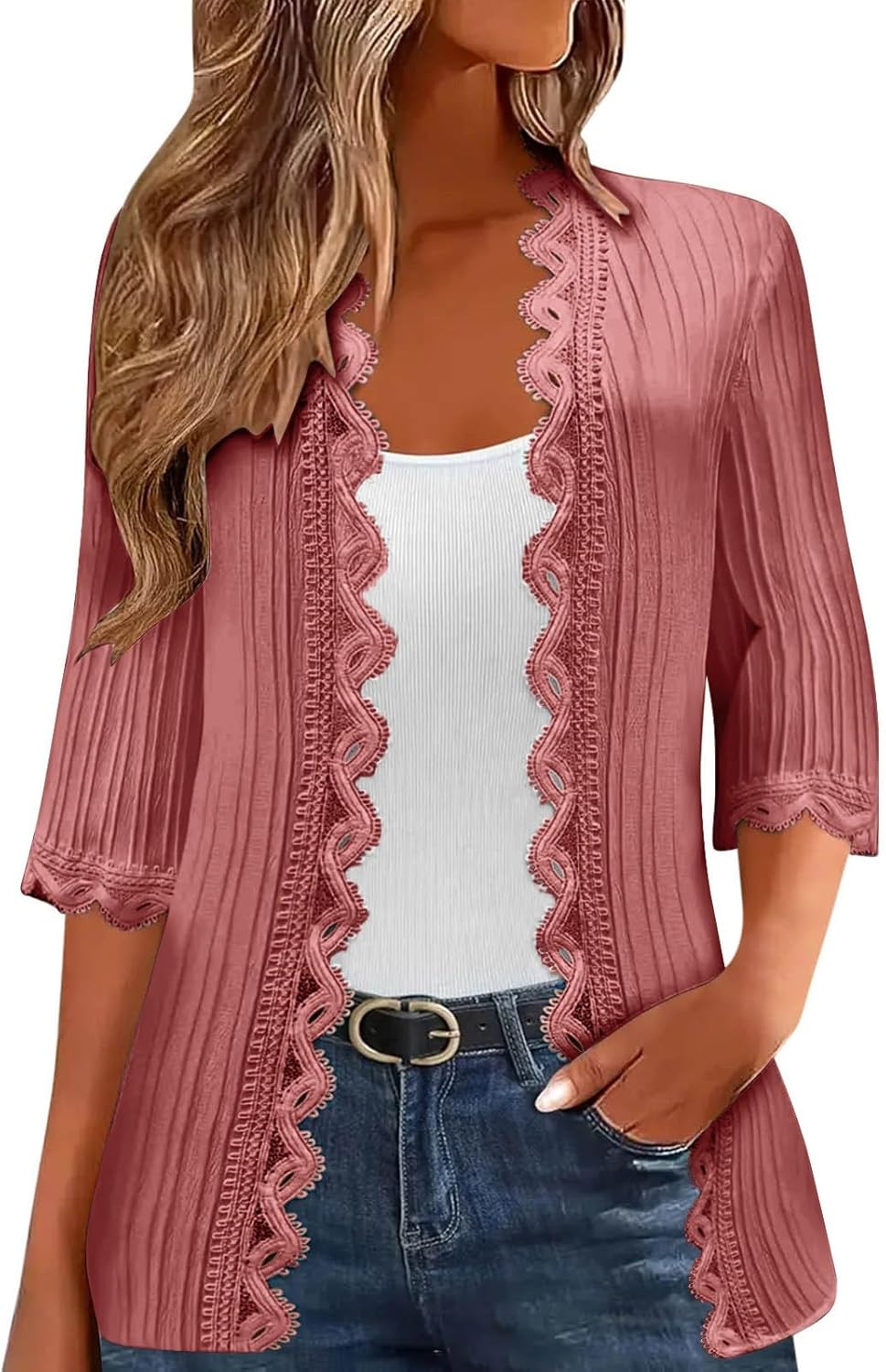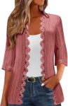 Cardigan Sweaters for Women Lightweight Casual Open Front Trendy Vacation Breathable Lace 3/4 Sleeve Fall Cardigans