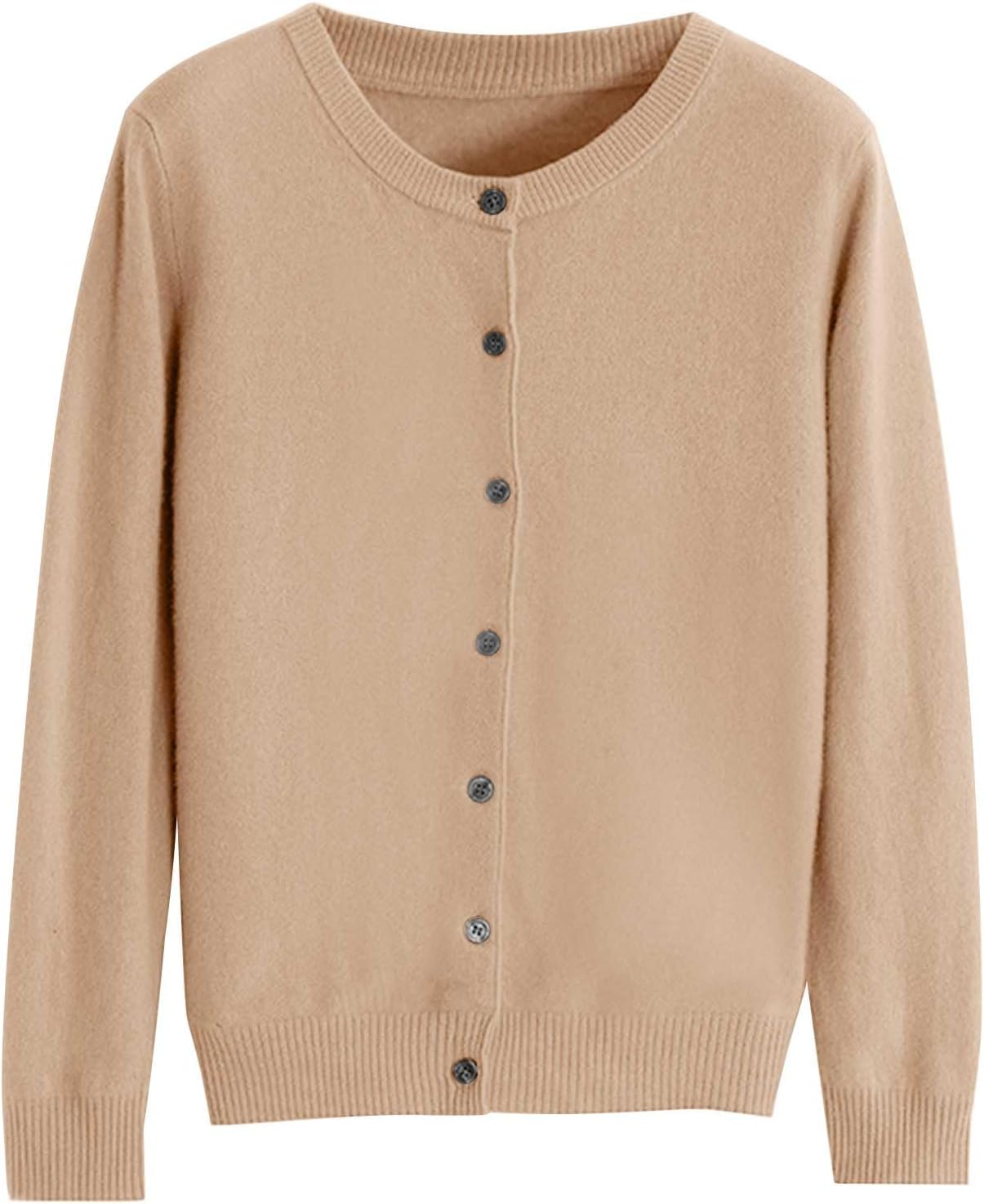 Cardigans for Women Button Down Crew Neck Long Sleeve Knitted Jacket Coat Fall Winter Warm Open Front Cardigan Sweater