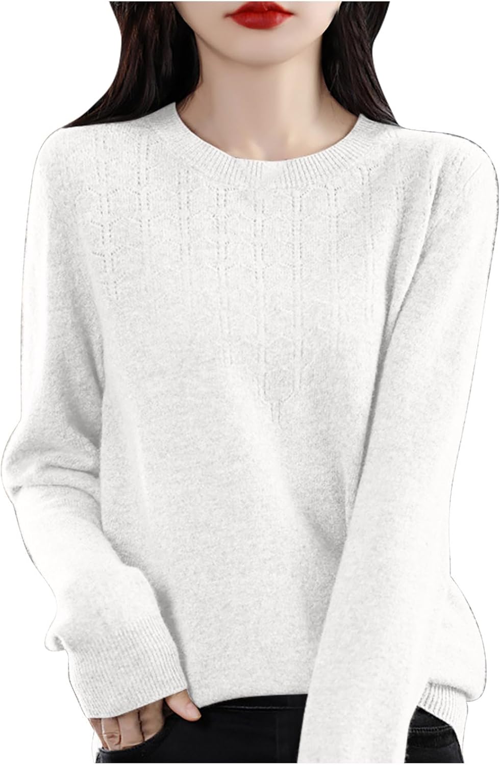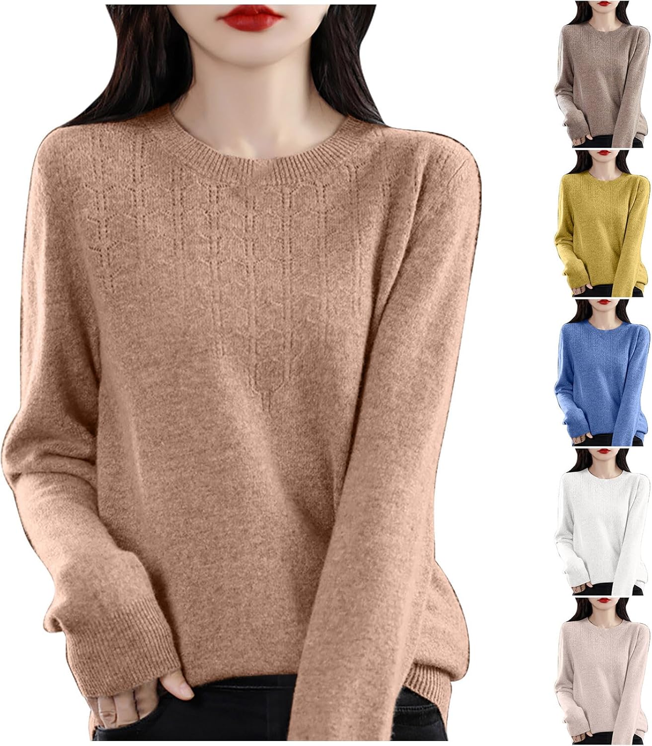 Cashmere Sweaters for Women Crewneck Long Sleeve Ribbed Cuff Hem Fall Jumper Tops Soft Knitted Pullover Sweater