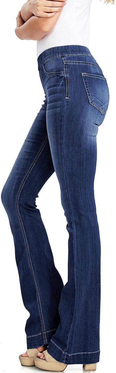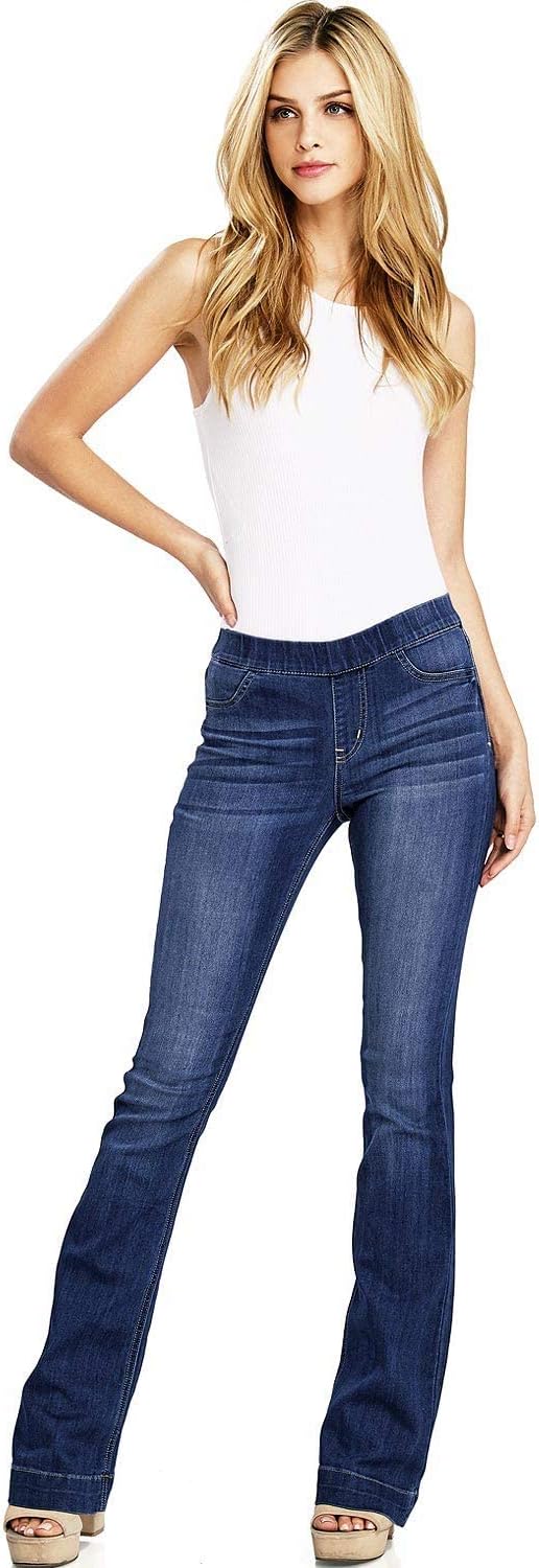 Customers find these jeans comfortable, hugging their body in the right places, and appreciate their stretchiness with a wide elastic band at the waist. Moreover, the material rivals $100 jeans in quality, and customers consider them worth the price. However, the fit and flare receive mixed feedback – while some find the length perfect, others say they’re too big, and while some like the flare style, others note they’re not boot cut as advertised. Additionally, the pocket size is also mixed, with some appreciating the back pockets while others point out the lack of front pockets.