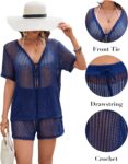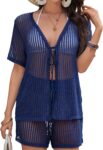 Charmo Womens Crochet Swimsuit Cover Up 2 Piece V Neck Bathing Suit Coverups Drawstring Beach Bikini Swimwear Set