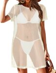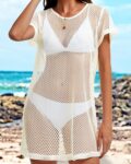 CHICGAL Womens Bathing Cover Ups Knit Bikini Short Sleeve Swimsuit Coverup Summer Swimwear Hollow Out Beach Dress