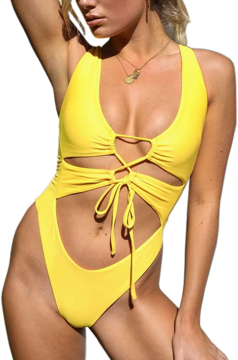 CHYRII Women’s Sexy Cutout Lace Up Backless High Cut One Piece Swimsuit Monokini