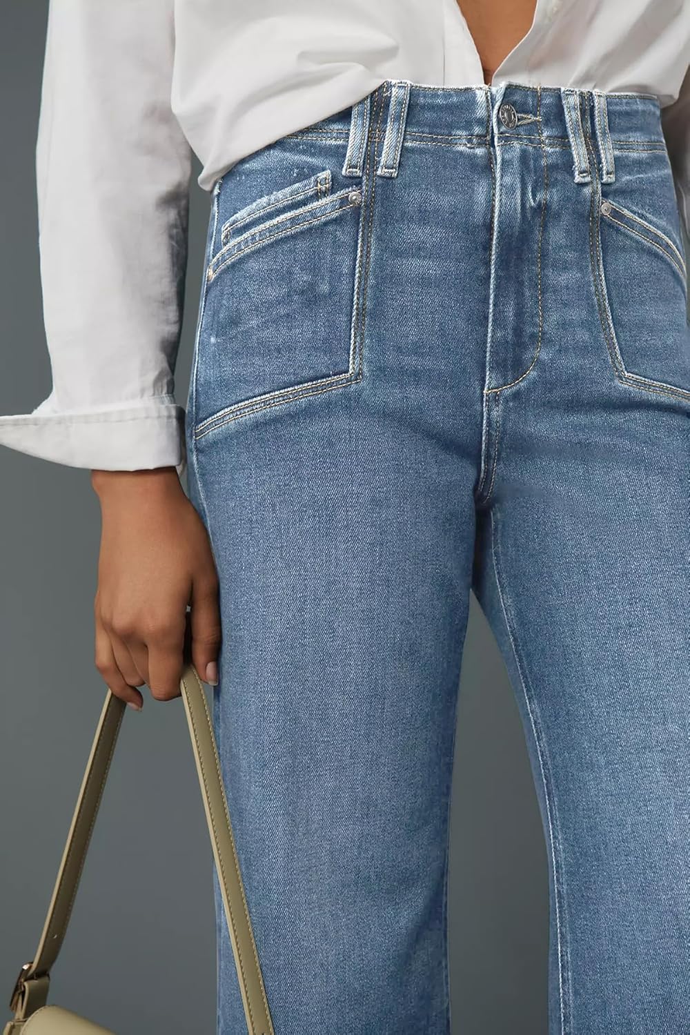 Customers find these jeans stylish, with one mentioning they can be dressed up or down, and appreciate their great quality and perfect fit. They are comfortable, stretchy, and have the right length, with one customer noting they skim past the heel. Customers disagree on whether the jeans are flattering, and while some find them true to size, others say they run small.