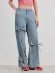 Customers find these jeans super cute, with one mentioning how the tie accents add a fun carefree vibe. They appreciate the material’s comfort and quality. The sizing receives mixed feedback – while some say they fit true to size, others find them tight in the waist.