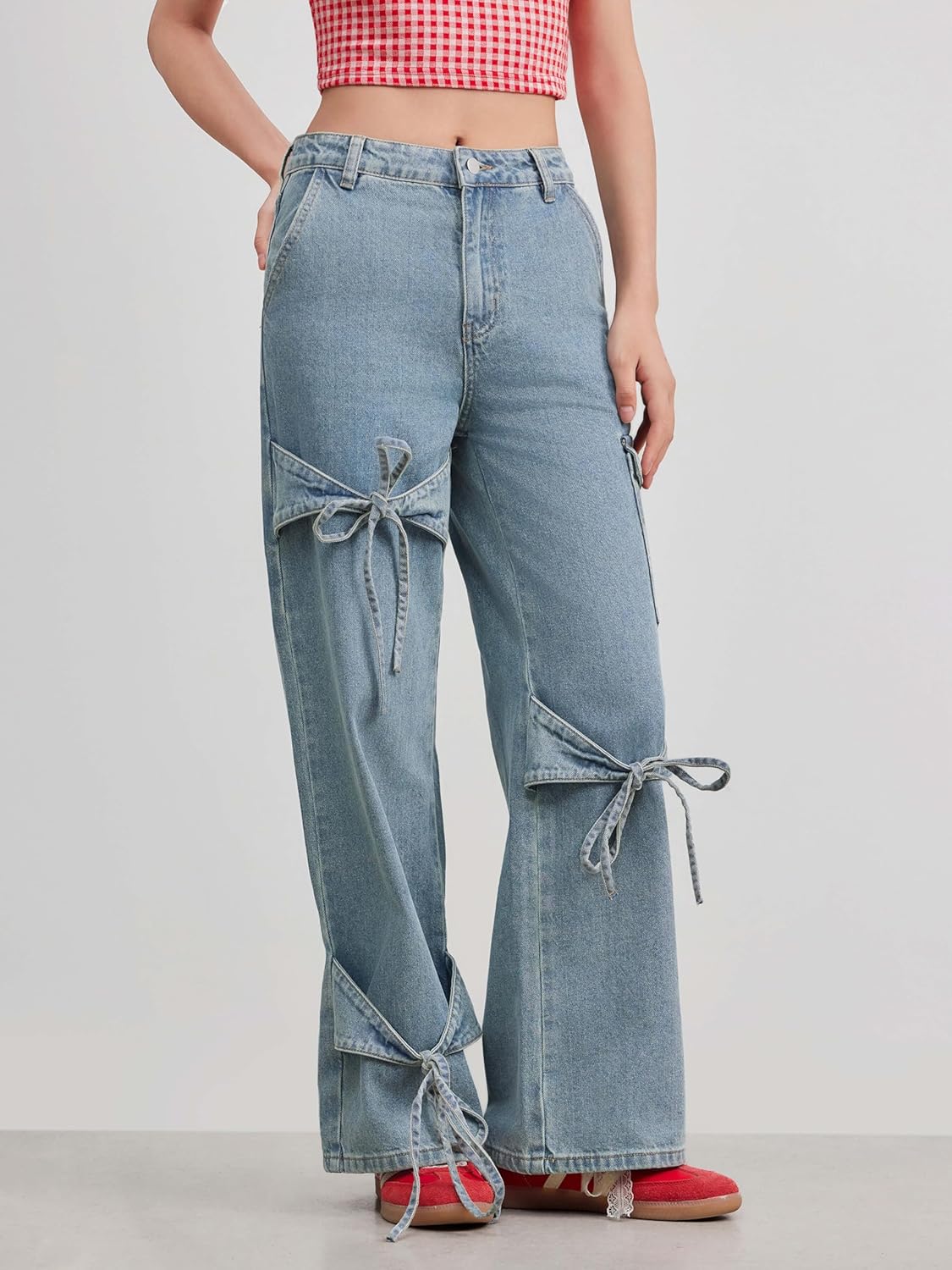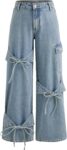 CIDER Baggy Jeans for Women Low Waisted Wide Straight Leg Bow Jeans Denim Pants
