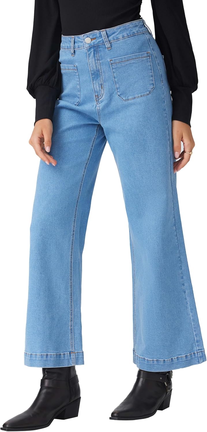 CIDER Womens Wide Leg Jeans High Waisted Stretchy Denim Flared Pants with Pockets