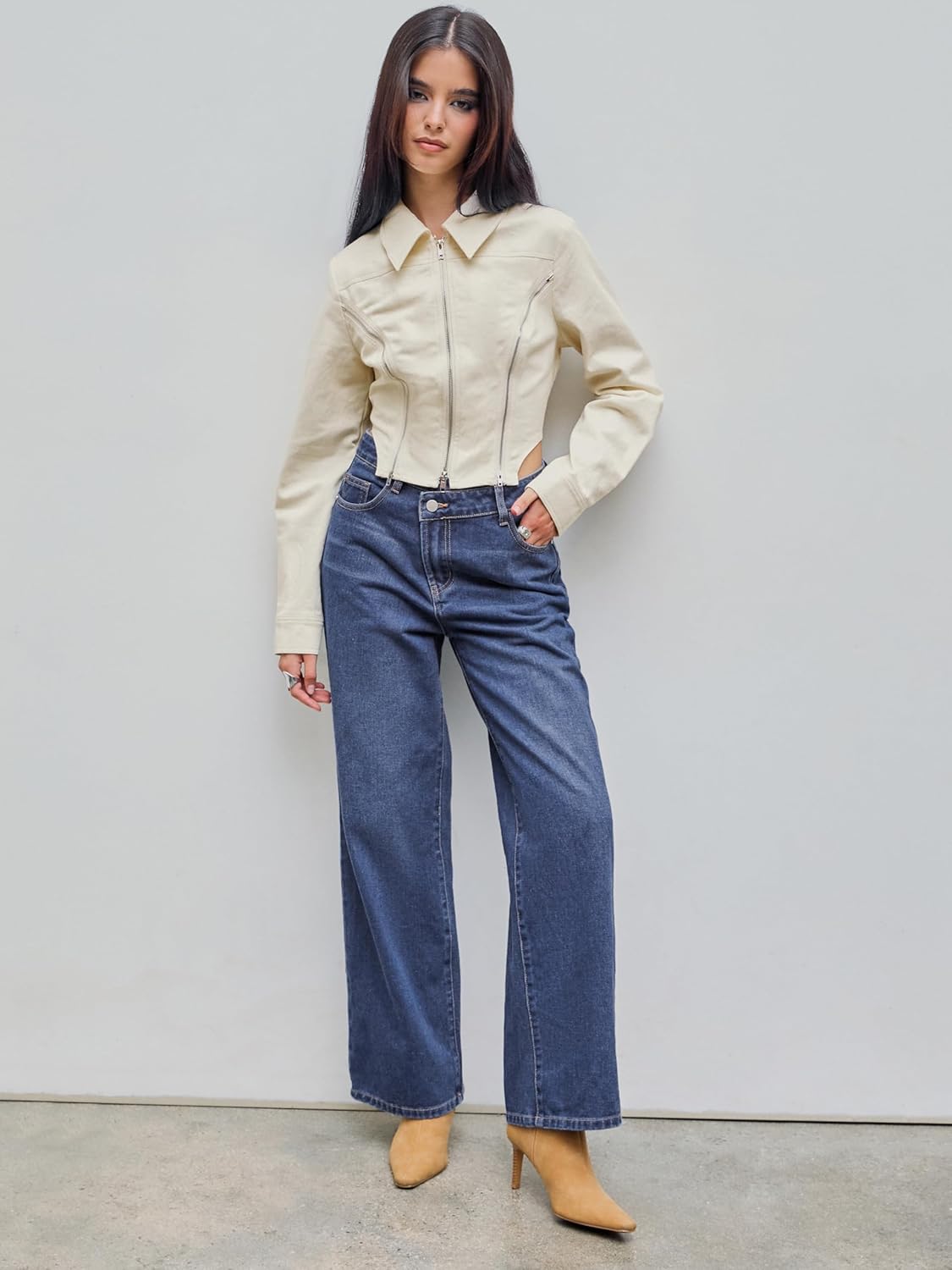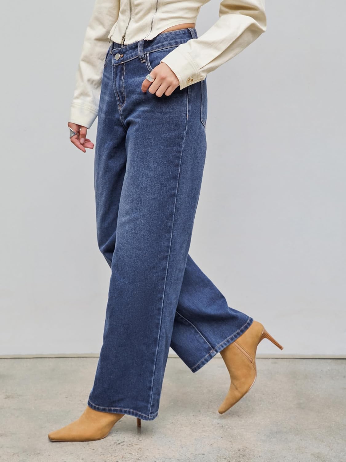 CIDER Women's Wide Leg Jeans Wrap High Waisted Baggy Boyfriend Jeans with Pockets Trendy Denim Pants