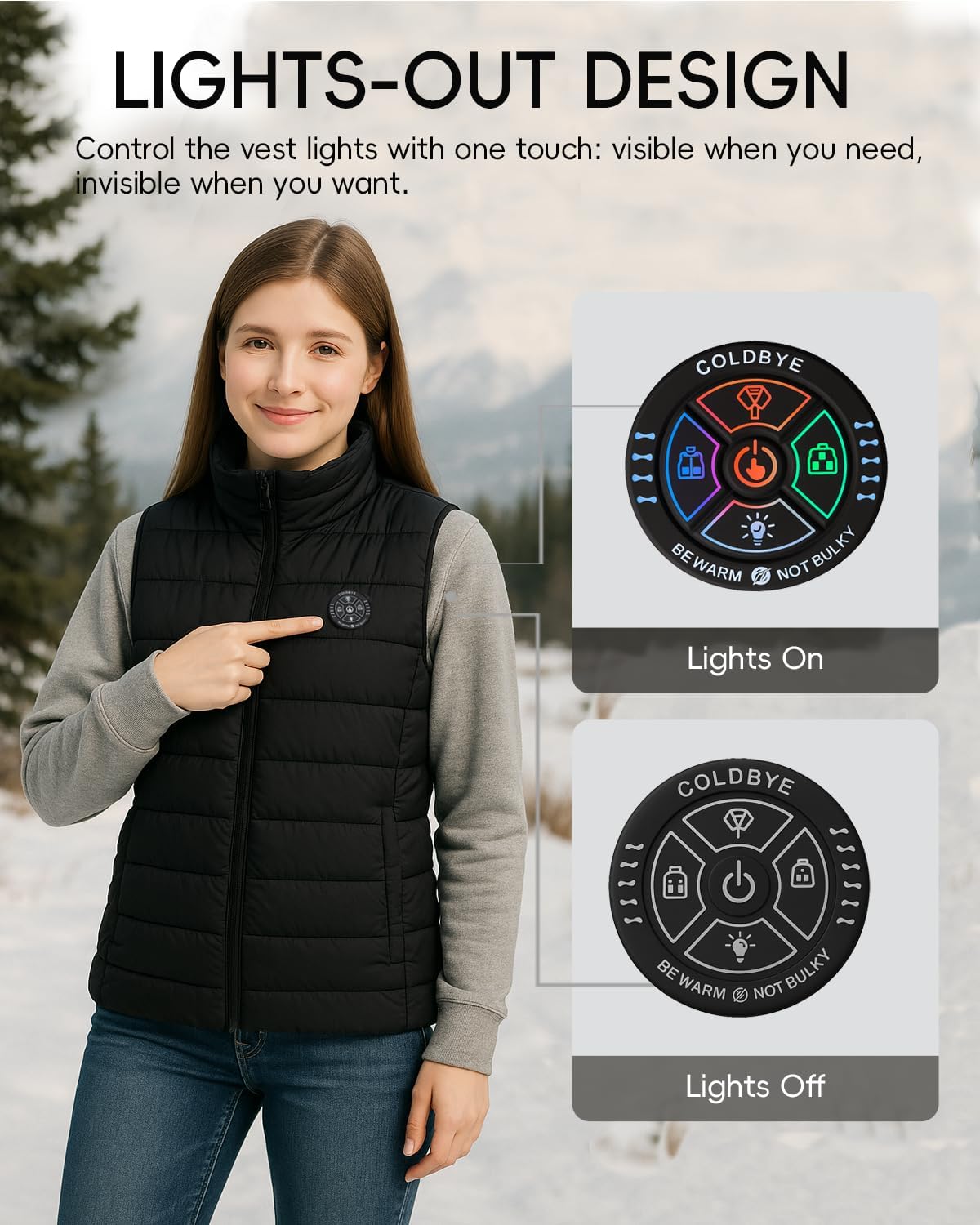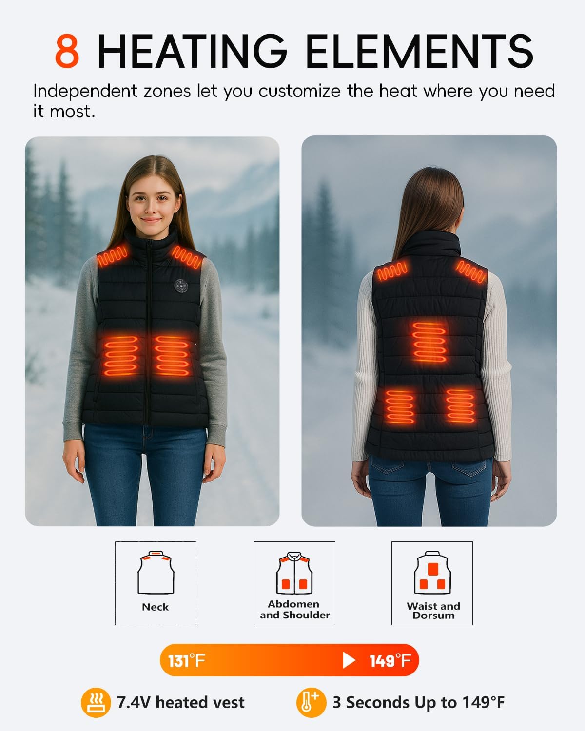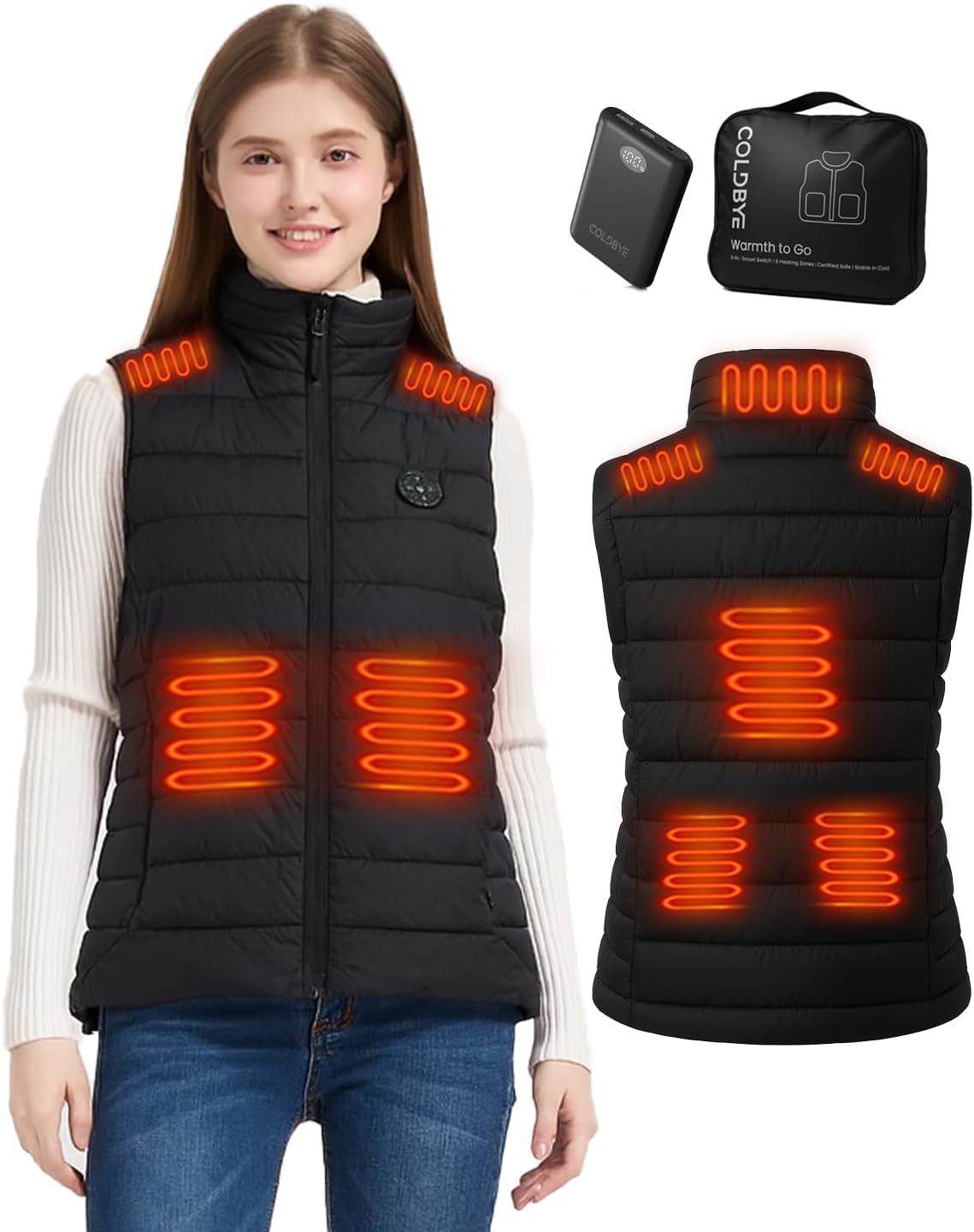 ColdBye Women’s 7.4V Heated Vest Jacket with Battery Pack Included | 8 Heating Zones, 5-in-1 Smart Control