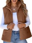 Corduroy Puffer Vest Women, Stand Collar Corduroy Coat with Pockets, Cropped Puffer Jacket Vest Winter Sleeveless Warm Lightweight(Brown,Medium)