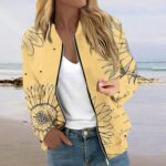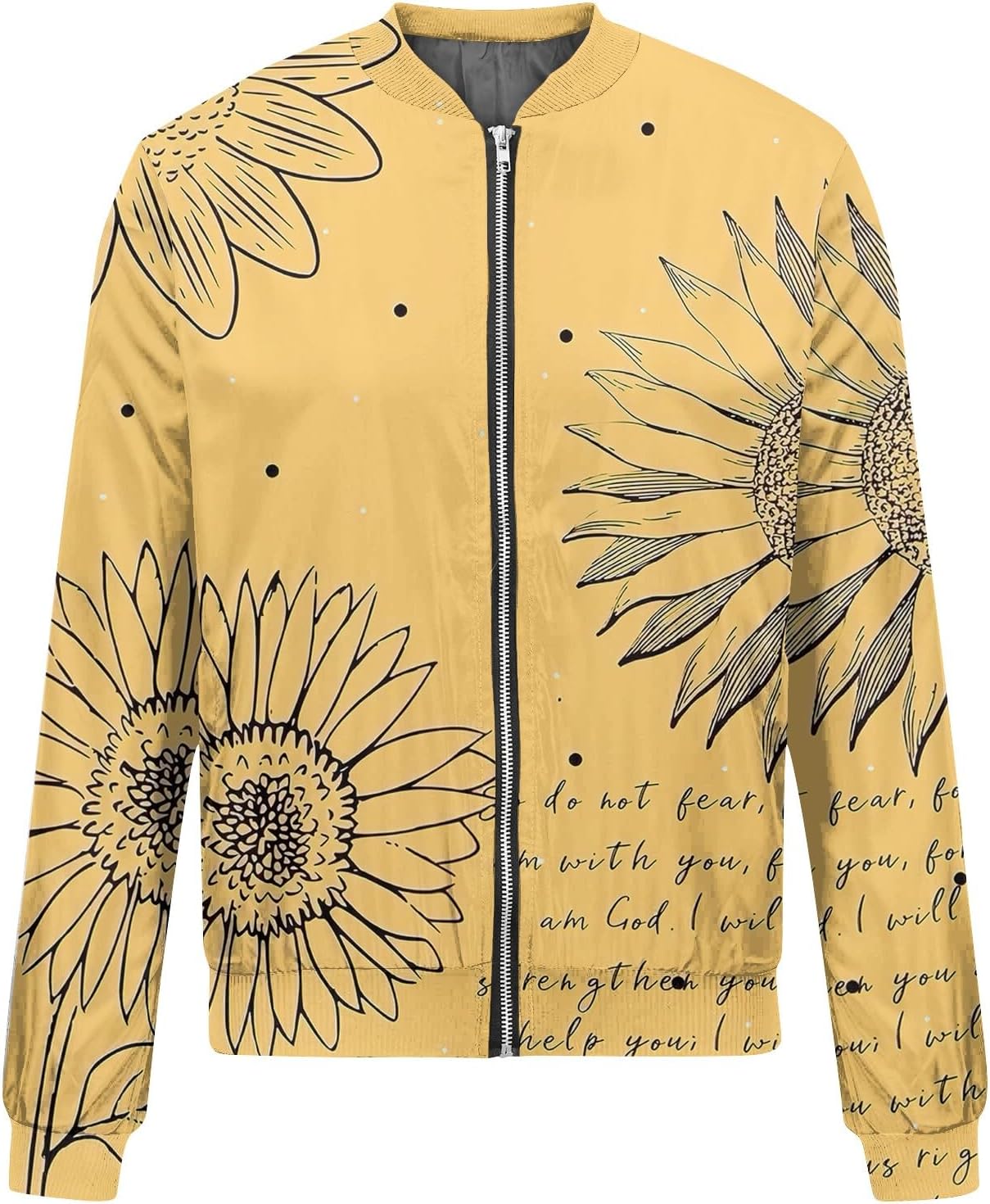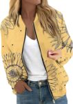 COTECRAM Bomber Jacket Women 2024 Causal Floral Zip Up Coats Long Sleeve Stand Collar Fall Jackets Lightweight Outerwear Tops