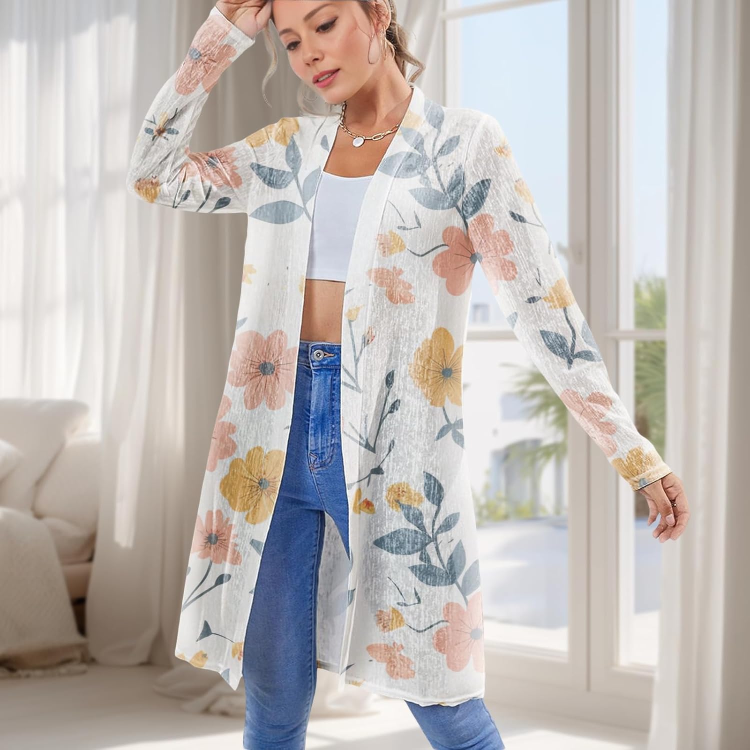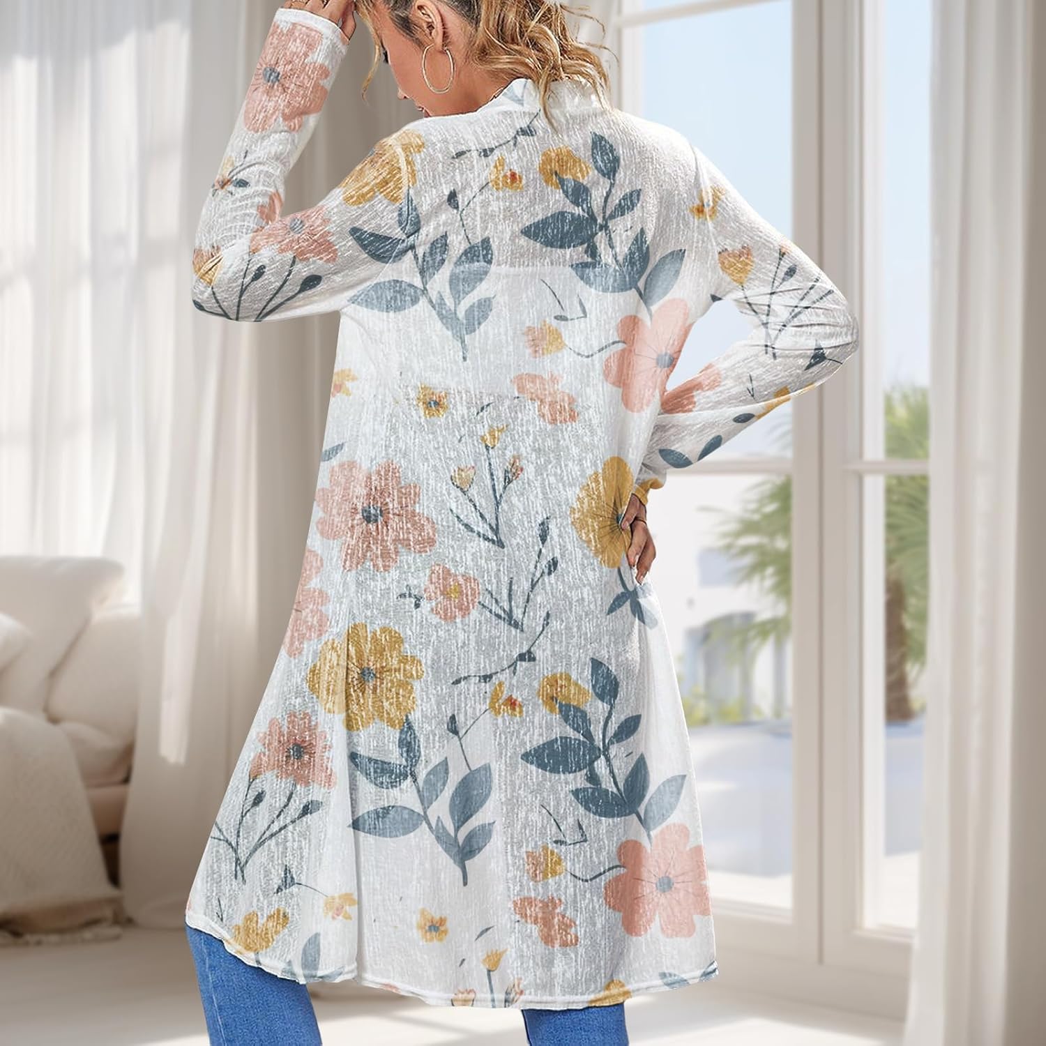 Cover Ups for Women t Lightweight Mid-Length Skin-Friendly Cardigan Vacation Wear Plus Size Long-Sleeved Outwear