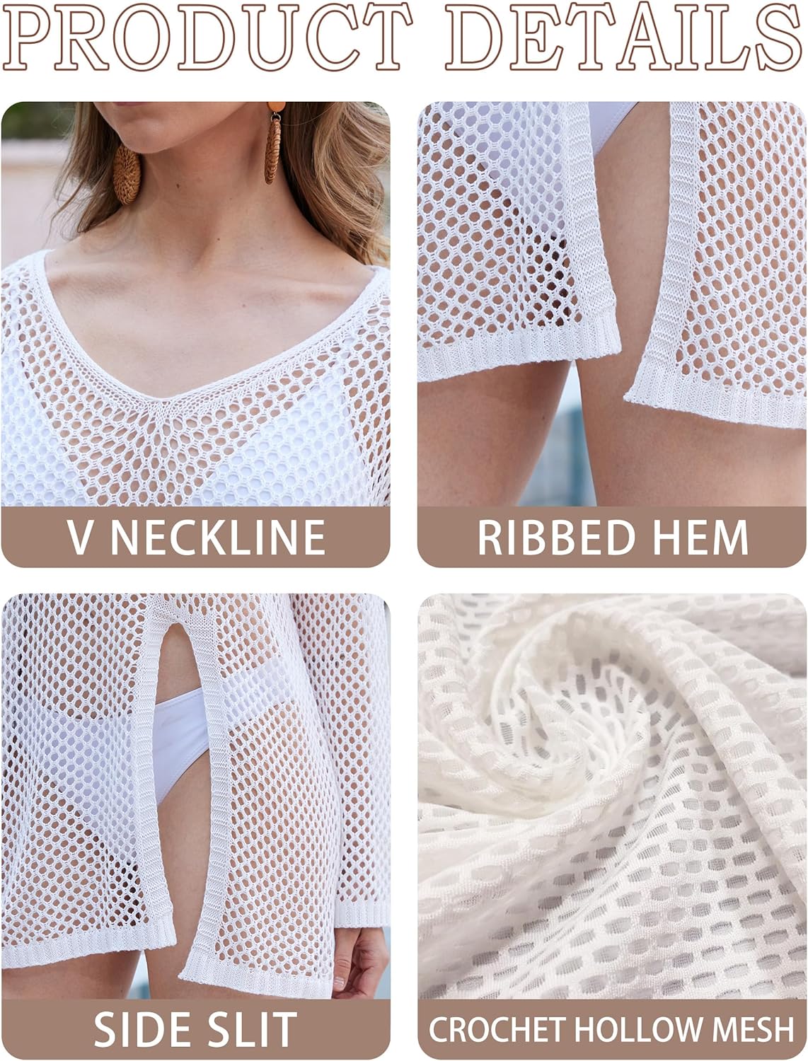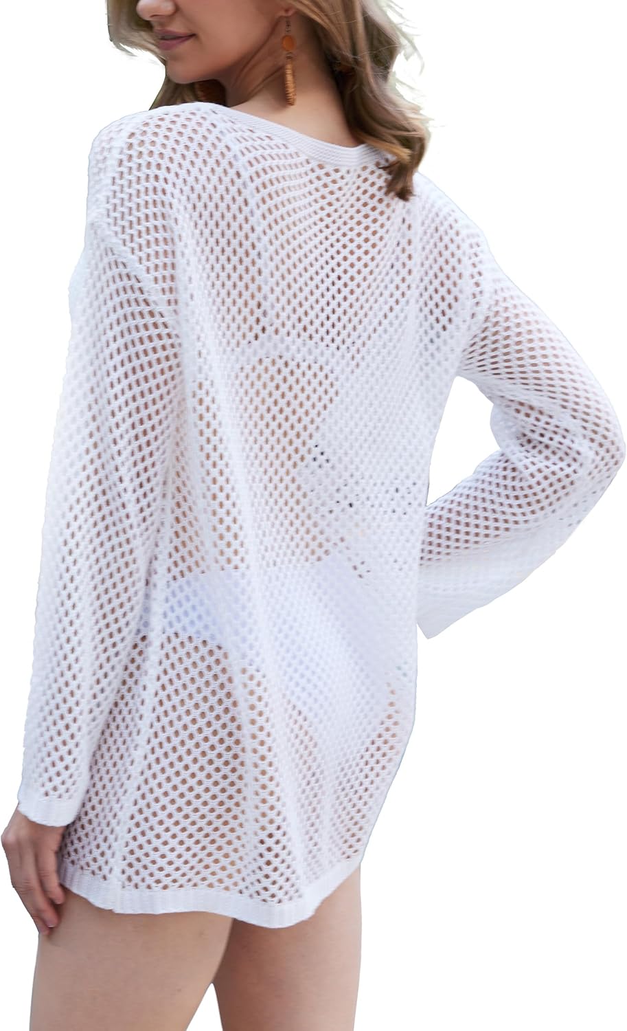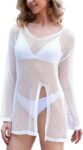Crochet Swim Coverup for Women, Long Sleeve Bikini Cover ups Swimsuit Beach Hollow Out Mesh Knit Bathing Suit Swimwear