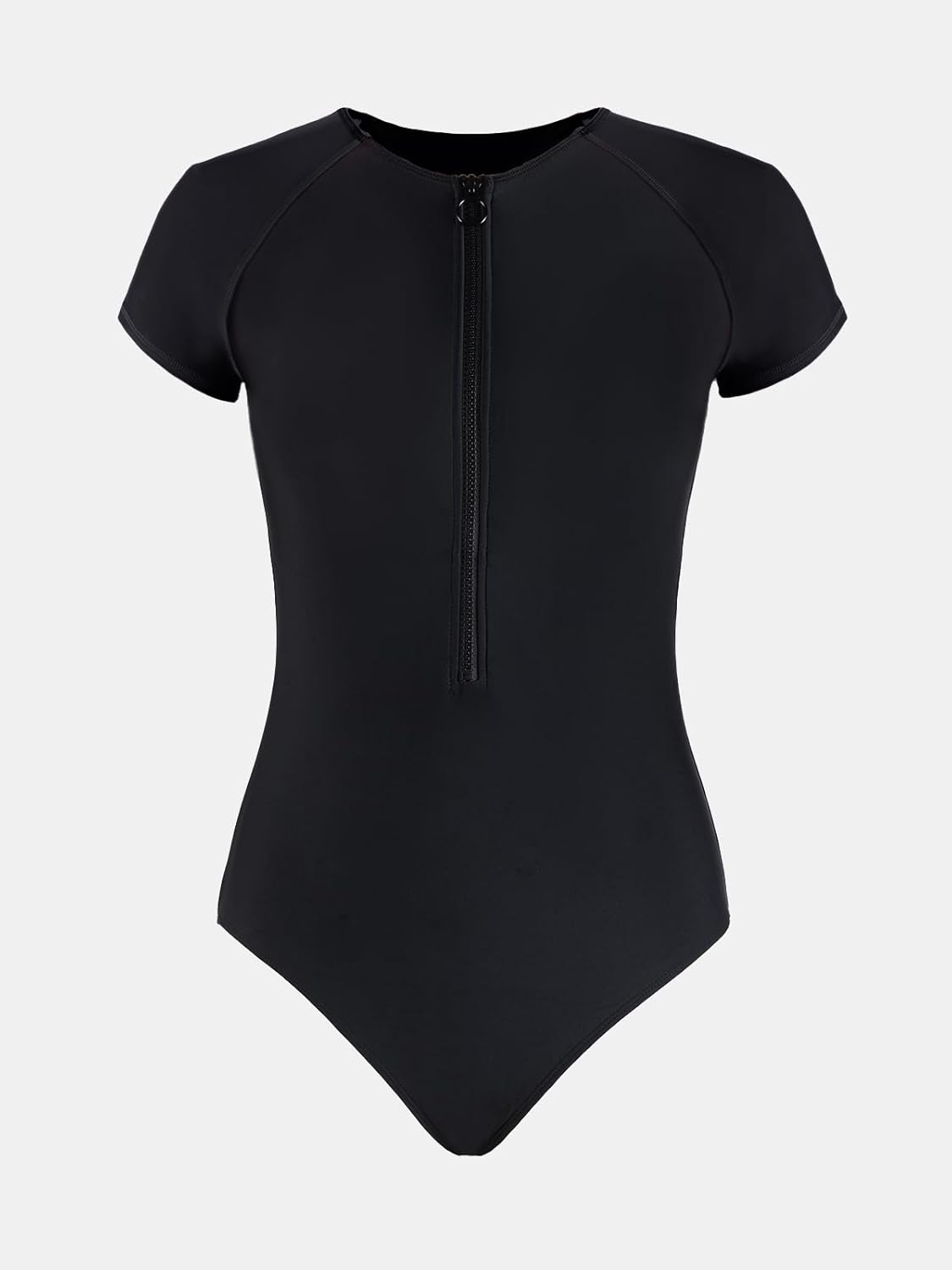 CUPSHE One Piece Swimsuit for Women Mock Neck Zipper Short Sleeve Bathing Suit