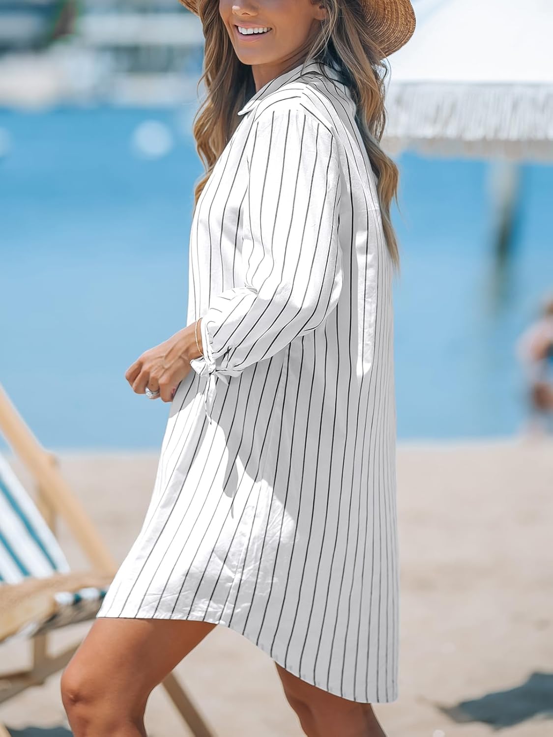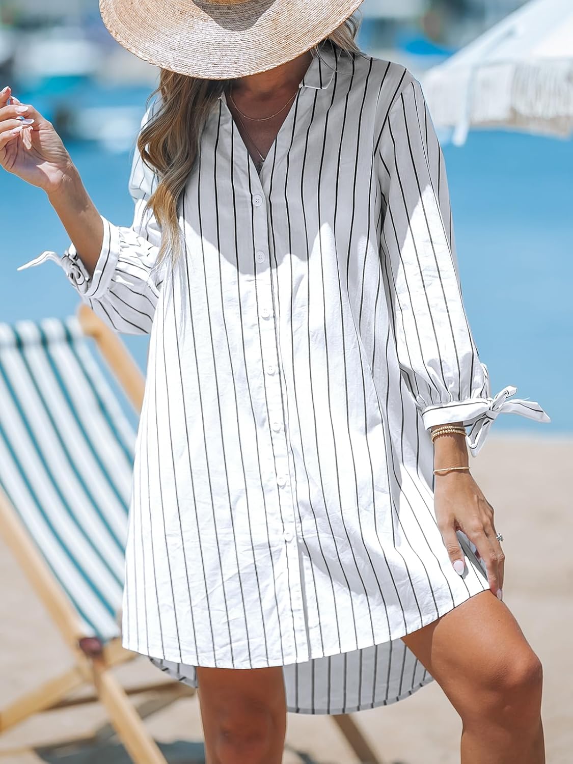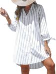 CUPSHE Women Mini Summer Dress Cover Up Oversize Floral Shirt 3/4 Sleeve Cuff Tie Button Down Beach Dresses Cover Up Top