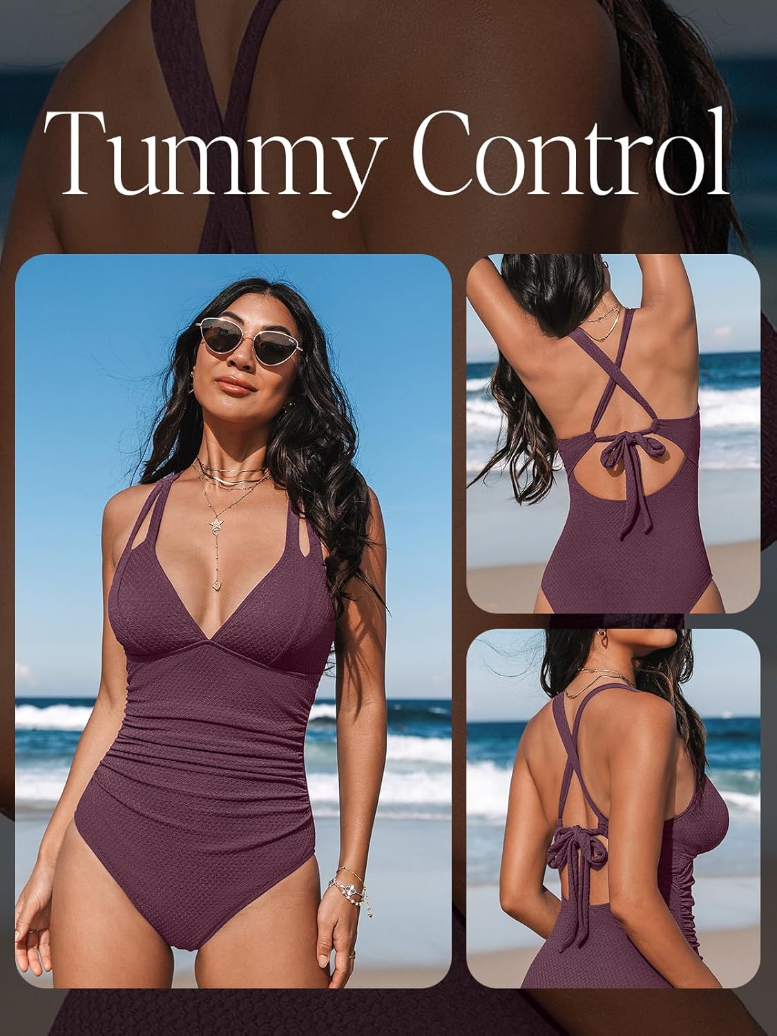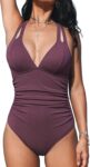 CUPSHE Women’s One Piece Swimsuit Tummy Control Deep V Neck Double Straps Crisscross Back Tie Bathing Suit