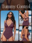 Customers find the swimsuit well-constructed and flattering, particularly noting its ruching, thigh cut, and full bum coverage. They appreciate its comfort, with one customer mentioning it’s suitable for walking around community pools, and like its color, with one review highlighting how the pink shade pops. The fit receives positive feedback, with one customer noting it can be adjusted, while the size receives mixed reviews – while some find it perfect for their size, others mention it’s not suitable for larger busts.