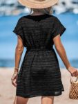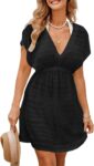 CUPSHE Women’s Swim Cover Up Dress V Neck Textured Striped Short Sleeve Cover Ups Casual Beach Summer