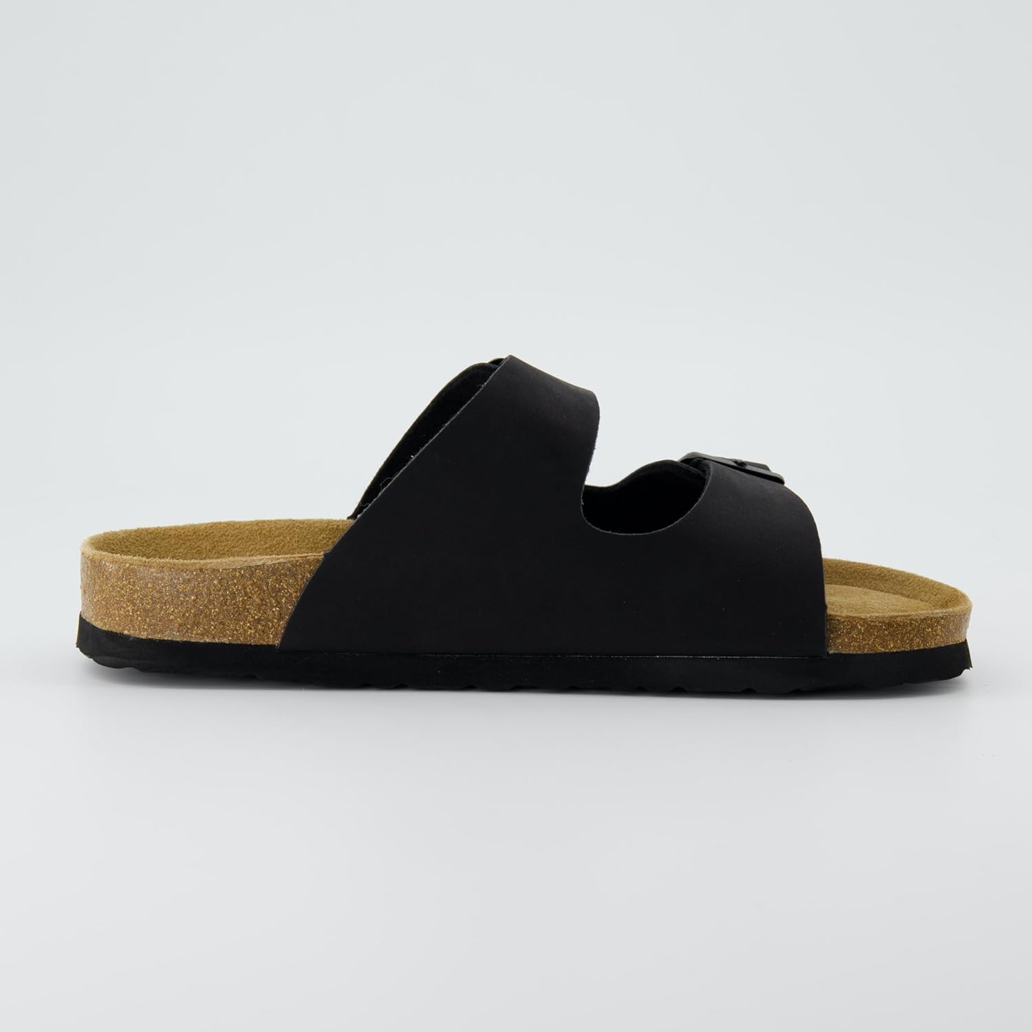 CUSHIONAIRE Lane Cork Footbed Sandals for Women – Comfortable Double Buckle Slip-On with Genuine Suede Footbed & Arch Support Slides for Women Footwear