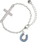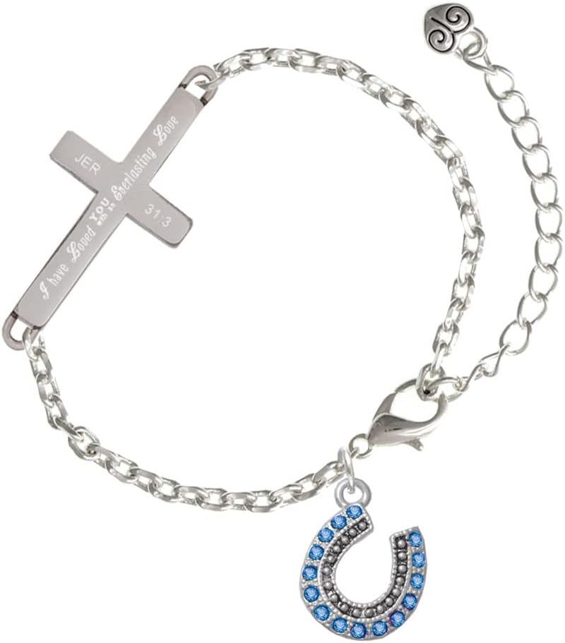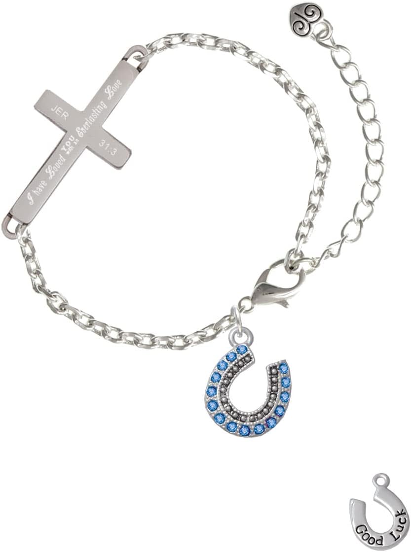 Delight Jewelry Silvertone Beaded Crystal Horseshoe with Good Luck Everlasting Love Engraved Cross Charm Bracelet, 6.5+1.5″ Extender