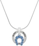 Delight Jewelry Silvertone Blue Crystal Horseshoe – Wish Ring Charm Necklace, 18″