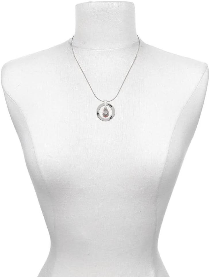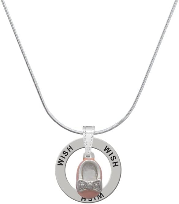 Delight Jewelry Silvertone Enamel Baby Shoe with Bow – Wish Ring Charm Necklace, 18″