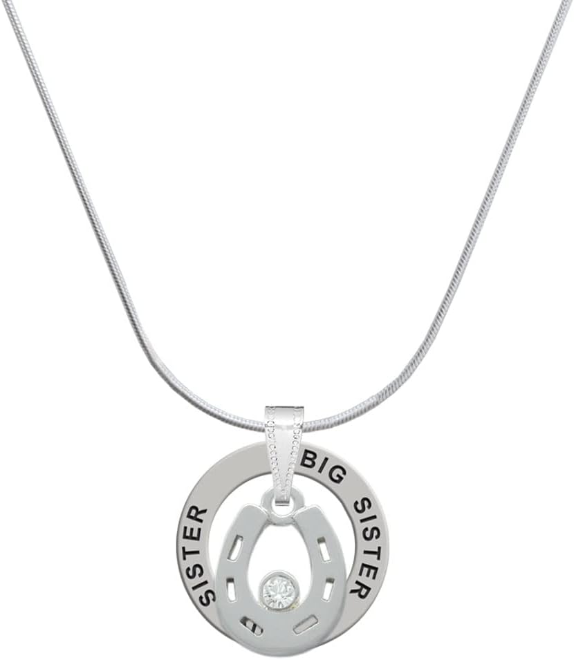 Delight Jewelry Silvertone Horseshoe with Clear Crystal – Big Sister Ring Charm Necklace, 18″