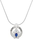 Silvertone Horseshoe with Large Oval Blue Crystal – Wish Ring Charm Necklace, 18″. Charm size is approx. 0.75 x 0.53 x 0.16 inches (HxWxD) including loop. Silvertone snake chain necklace is 18 inches with a lobster claw clasp. Affirmation ring is 7/8″ in diameter. Whether you are blowing out birthday candles, or making a wish on a star, wear this necklace as a reminder. Identify your wish, visualize the outcome, uncover the obstacle, and make your plan. PLEASE NOTE: Our products are not intended for individuals 14 years and younger.