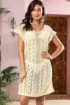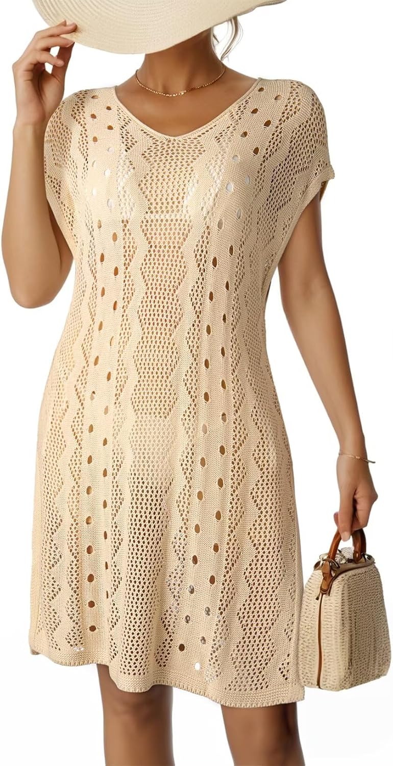 Dokotoo Women’s Crochet Cover Up Swimwear Beachwear Scoop Neck Short Sleeve Mini Dress Beach Dress Crochet Coverups for Women
