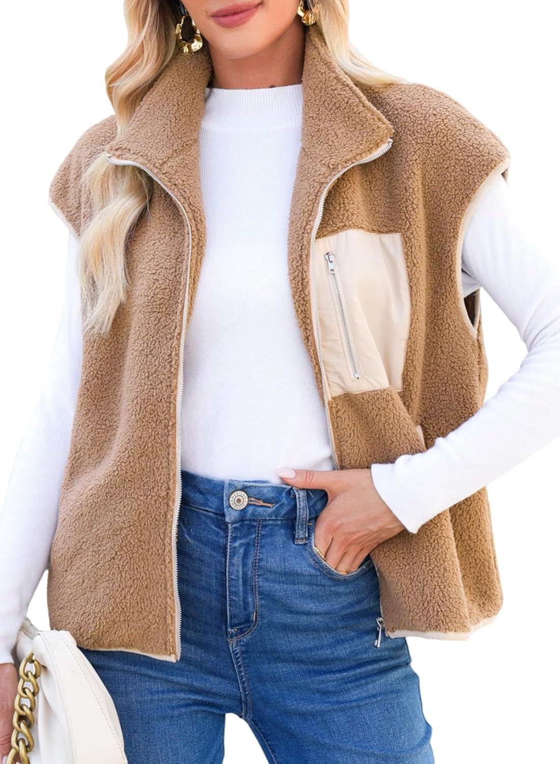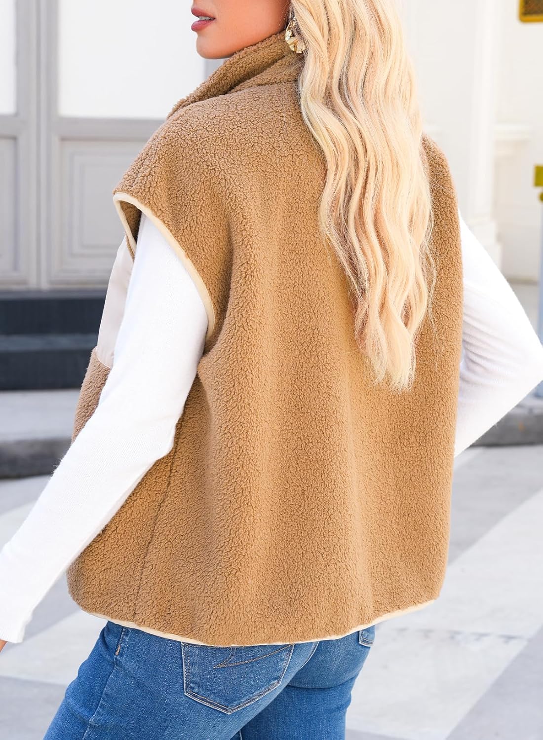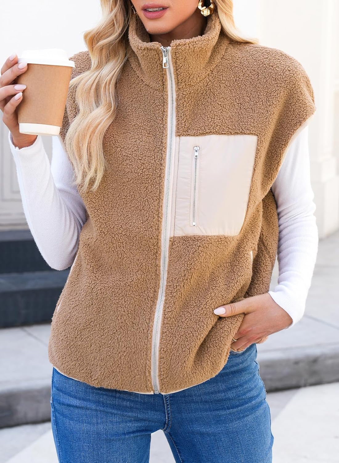 Dokotoo Womens Fleece Jacket Vest Sleeveless Fuzzy Sherpa Jackets Zip Up Oversized Casual Coats Fall Winter Womens Tops 2025