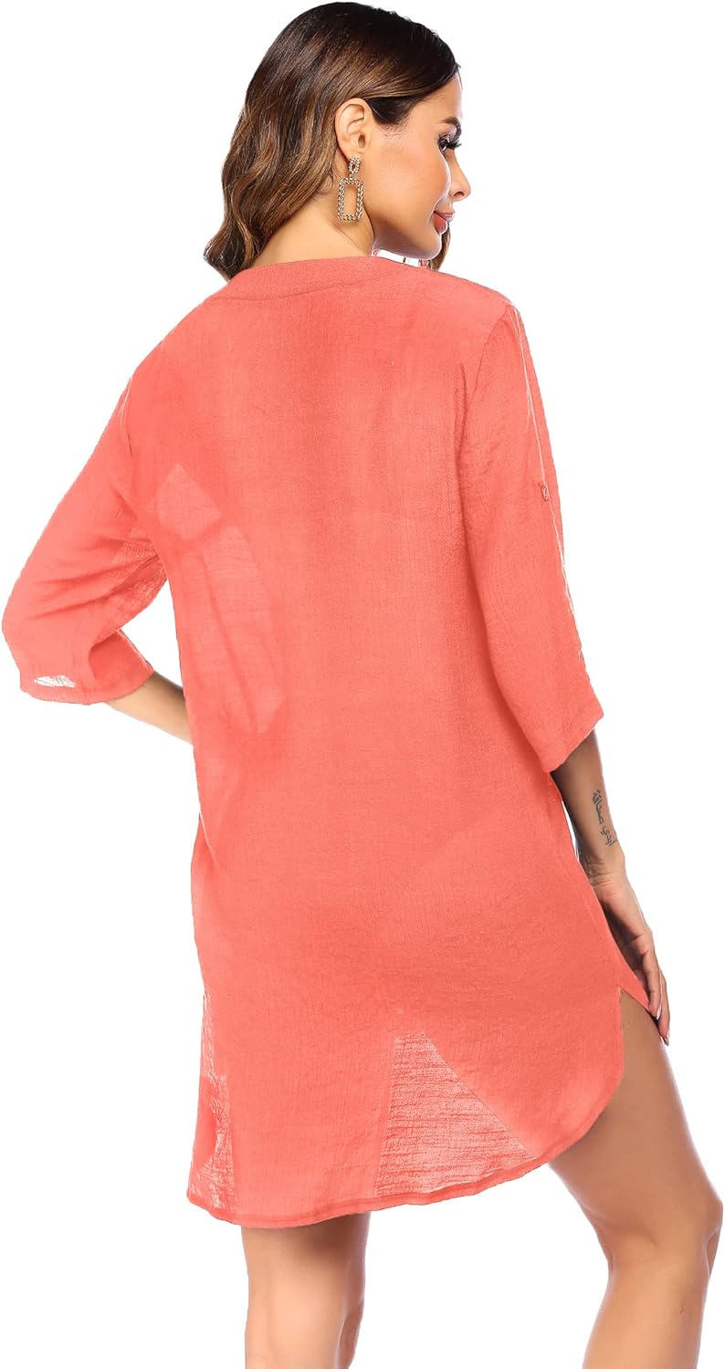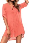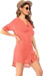 Ekouaer Bathing Suit Cover Up for Women V Neck Button Down Swimsuit Coverup Beach Dress Shirt S-3XL