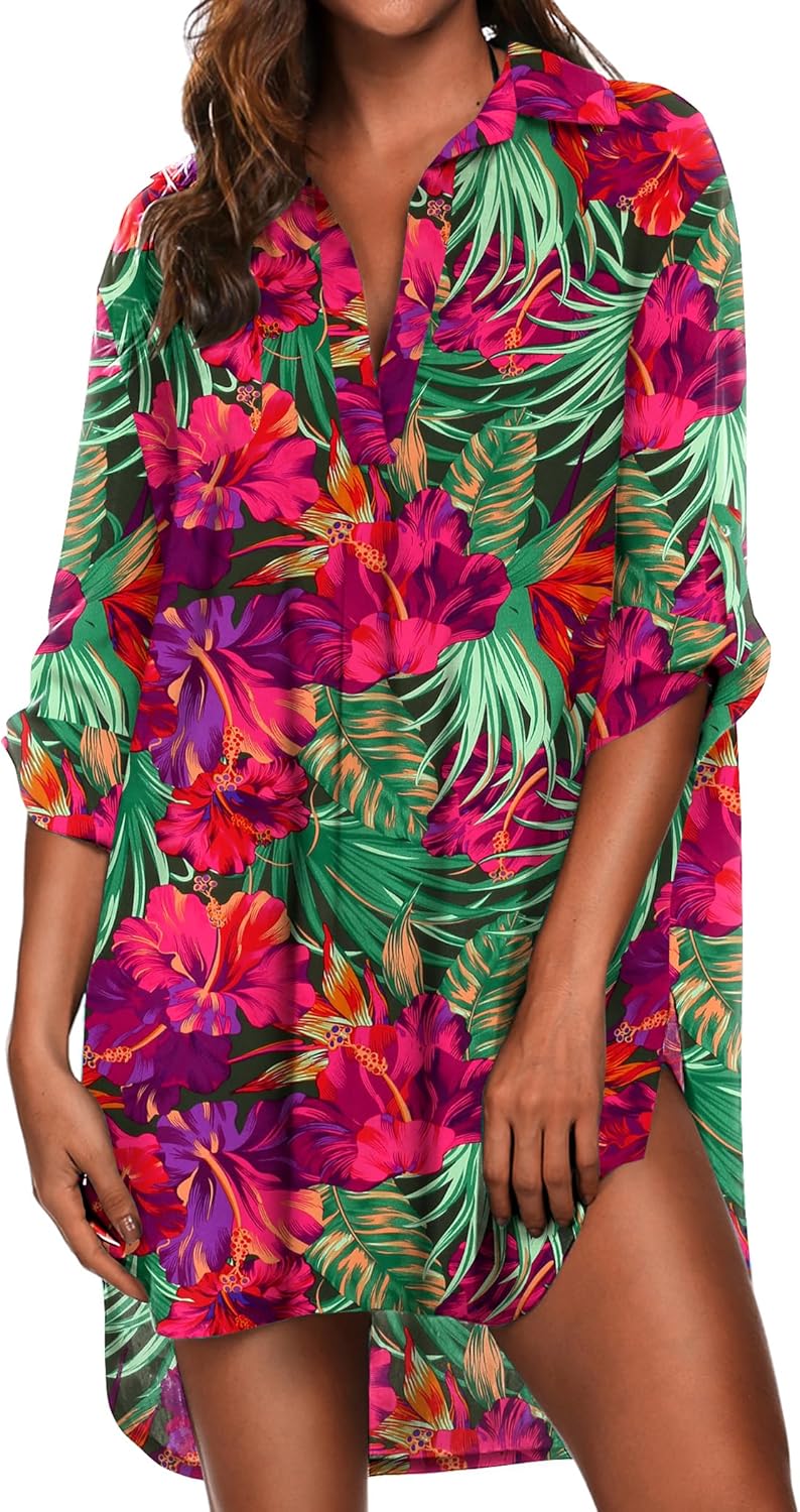Ekouaer Beach Cover Ups for Women V Neck Bathing Suit Cover Up Shirt