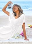 Ekouaer Women’s Beach Cover Up Short Sleeve Swimsuit Coverups V-Neck Tie Waist Bikini Beachwear