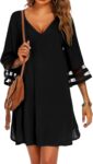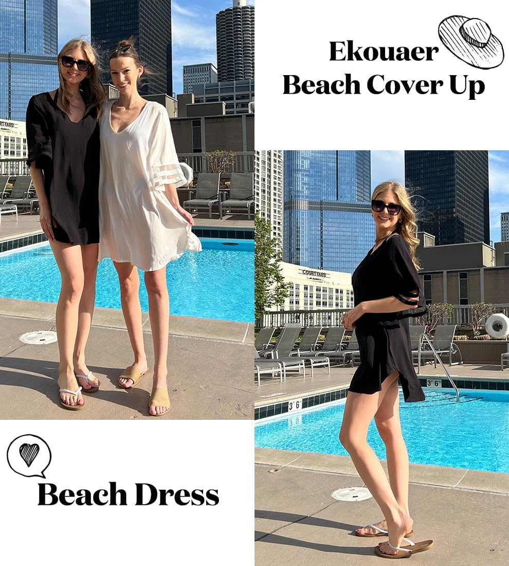 Ekouaer Women’s Swimsuit Cover Up 3/4 Bell Sleeve Beachwear Coverups Deep V-Neck Bikini Beach Dress S-3XL