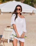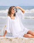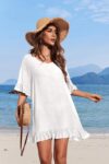 Ekouaer Womens Swimsuit Coverup V Neck Bathing Suit Beach Dress Sexy Ruffle Sleeves Bikini Cover Up Loose Top XS-3XL