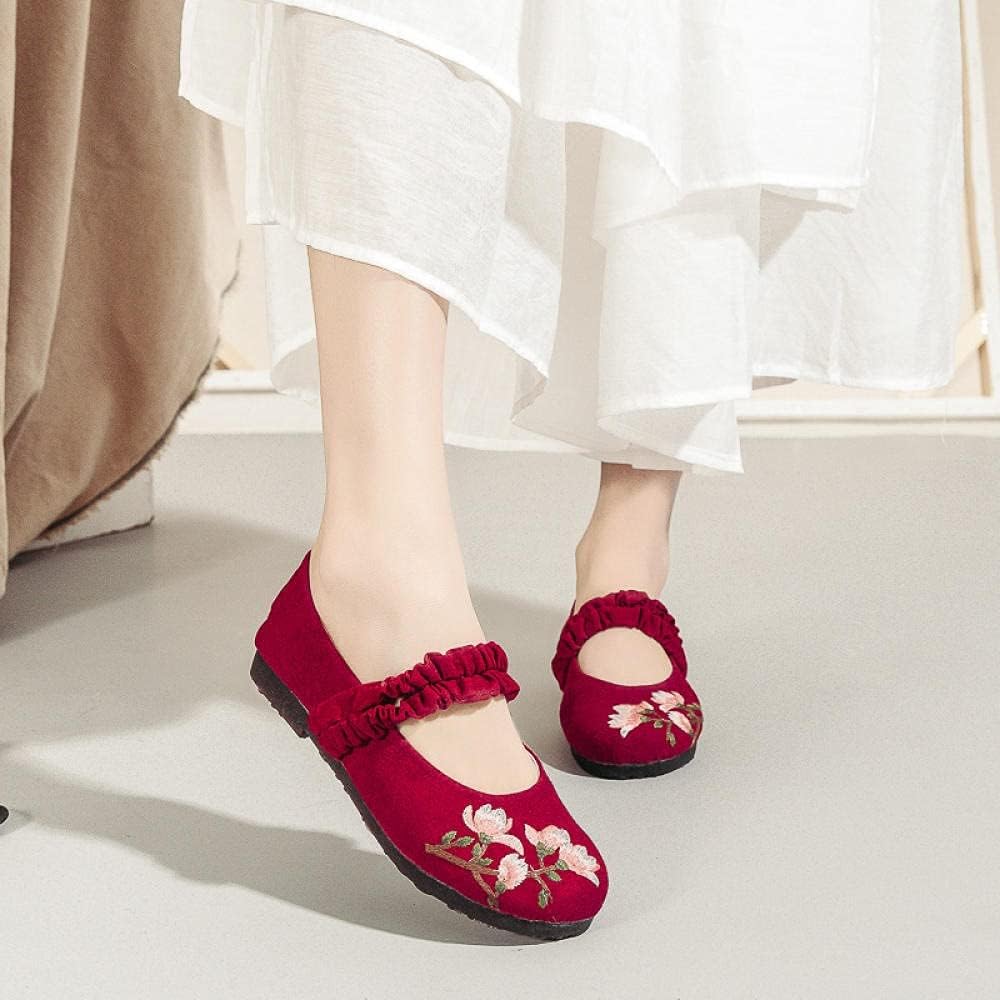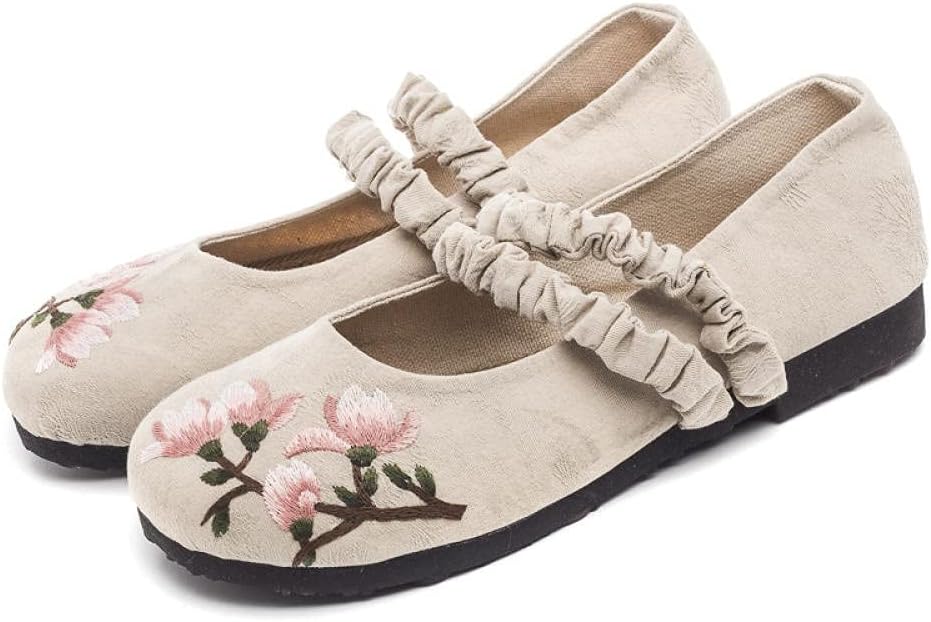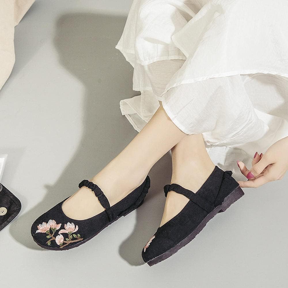 Elastic Strap Handmade Women Linen Cotton Ballet Flats Retro Ladies Casual Mary Jane Embroidered Shoes Soft Ballerinas Embroidered Shoes (Color : Black Size : 9) (Black 7.5)