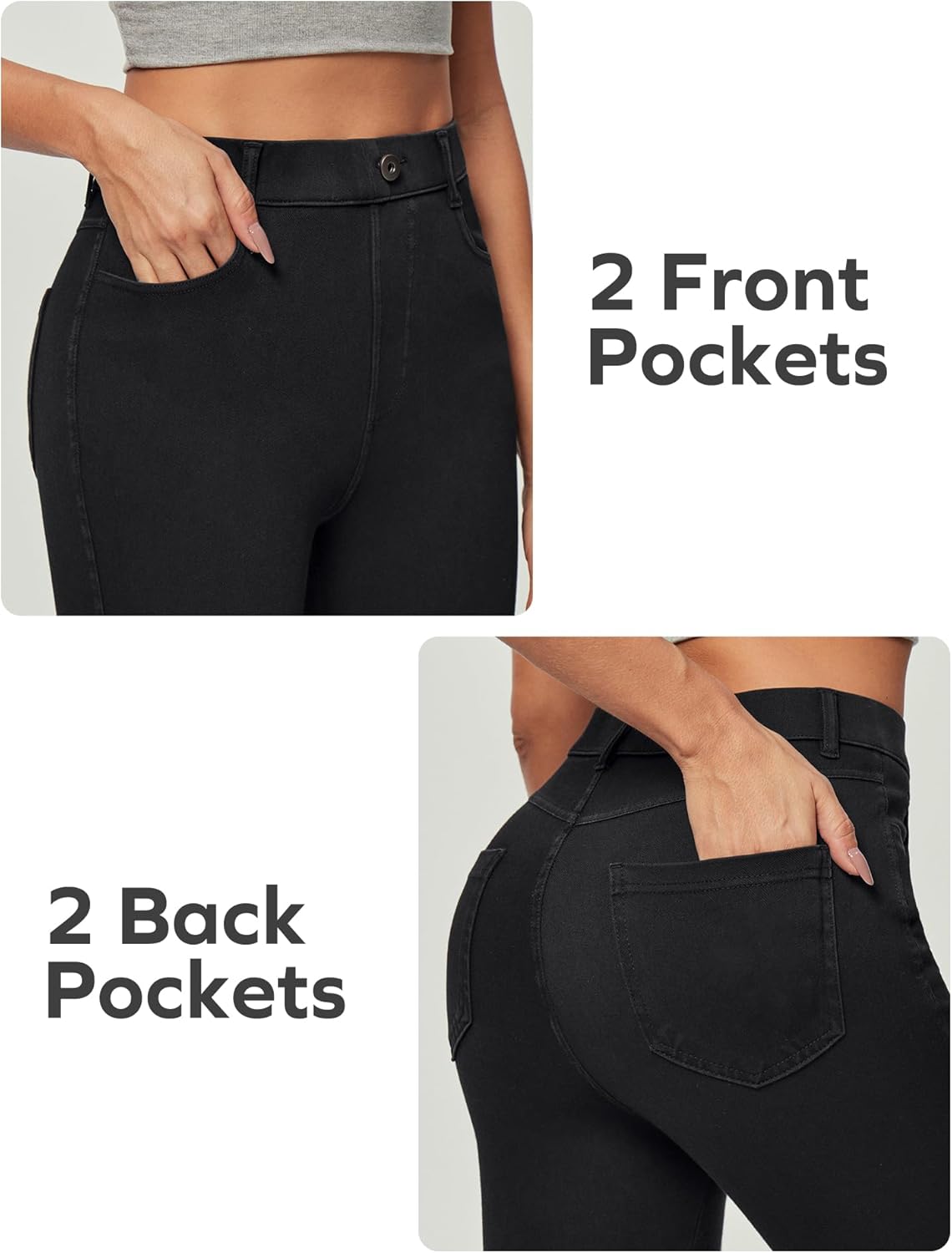 Redefining comfortable denim fabric, blending breathability and super stretch to bring you the comfort of denim leggings for women tummy control and the style of skinny jeans