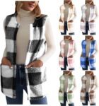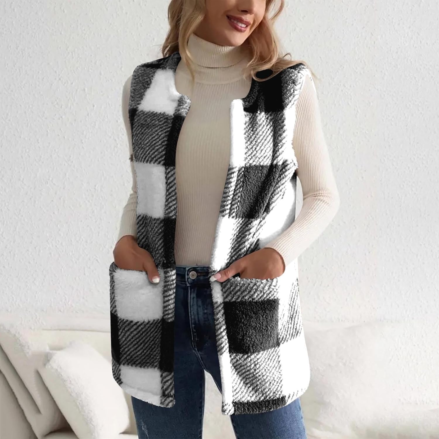Fall Flannel Plaid Vest For Women Trendy Sleeveless Button Down Long Jackets Casual Winter Checkered Shacket Coat