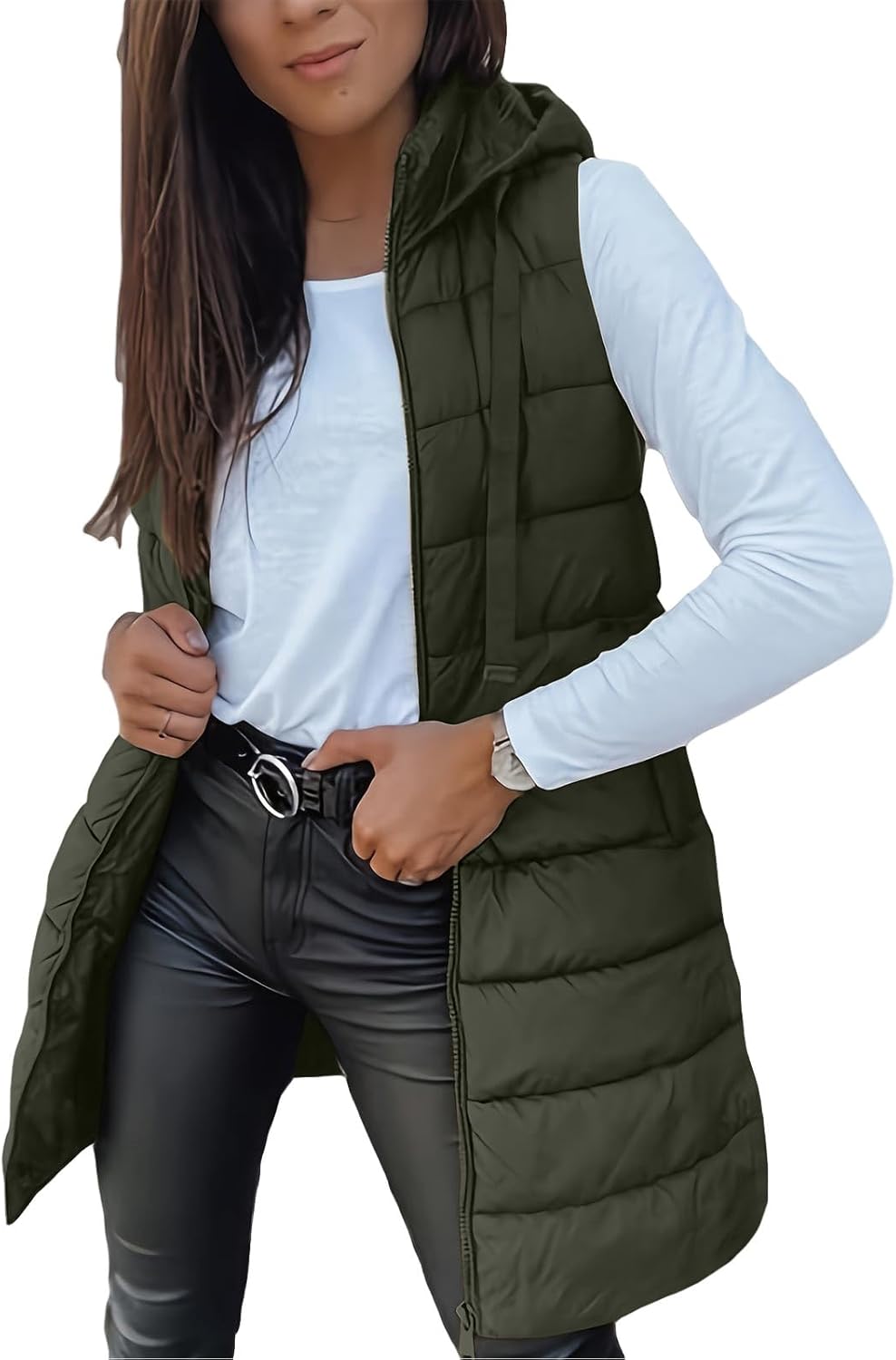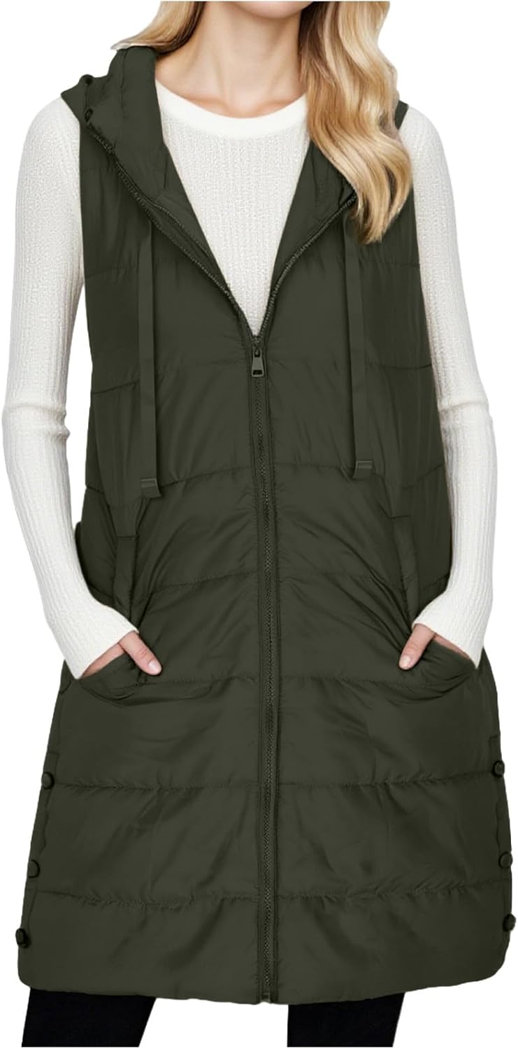 Fall Winter Long Puffer Hooded Vest for Women Sleeveless Women’s Coats Jackets Vests 2025 Trendy Womens Outerwear