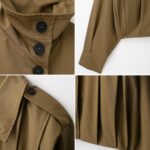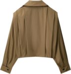 FindThy Women’s Cropped Pleated Jacket Casual Lapel Collar Long Sleeve Button Down Outerwear Trench Coat