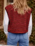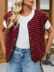 Fisoew Womens Fuzzy Fleece Vest Striped Sleeveless Winter Jackets Button Down Sherpa Vest Outwear With Pockets